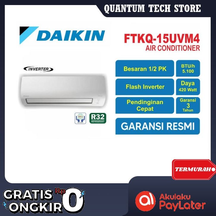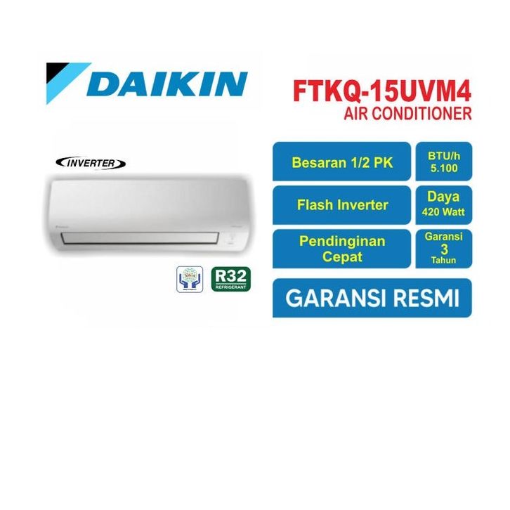 FREE ONGKIR AC DAIKIN FTKQ 15 UVM4 0.5 PK 1/2 PK + PASANG R32 FLASH INVERTER AC 1 2PK SETENGAH PK DC PORTABLE