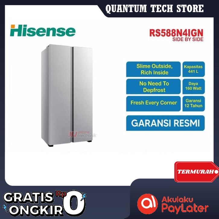 FREE ONGKIR KULKAS HISENSE RS 588 N4IGN LEMARI ES SIDE BY SIDE RS588N4IGN GARANSI RESMI