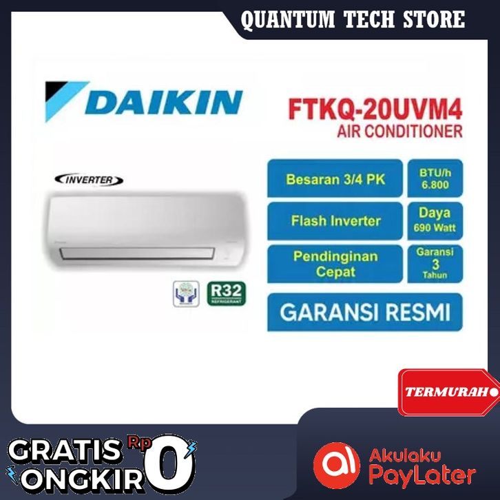 FREE ONGKIR AC DAIKIN FTC 20 NV14 / FTKQ 20 UVM 3/4 PK + PASANG R32 STANDARD THAILAND AC 1 2PK SETENGAH PK DC PORTABLE