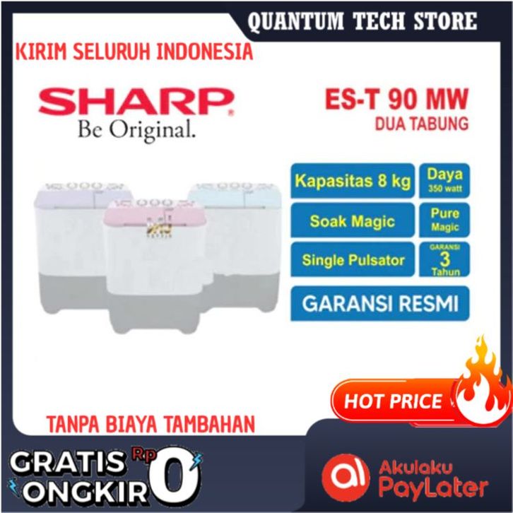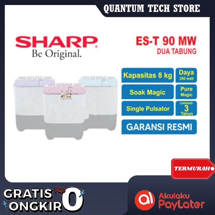 FREE ONGKIR MESIN CUCI SHARP EST 90 MW / TW 1128 / PWM 1081 / EWS 98262 8KG 2 TABUNG PURE MAGIC LOW WATT AQUA SHARP