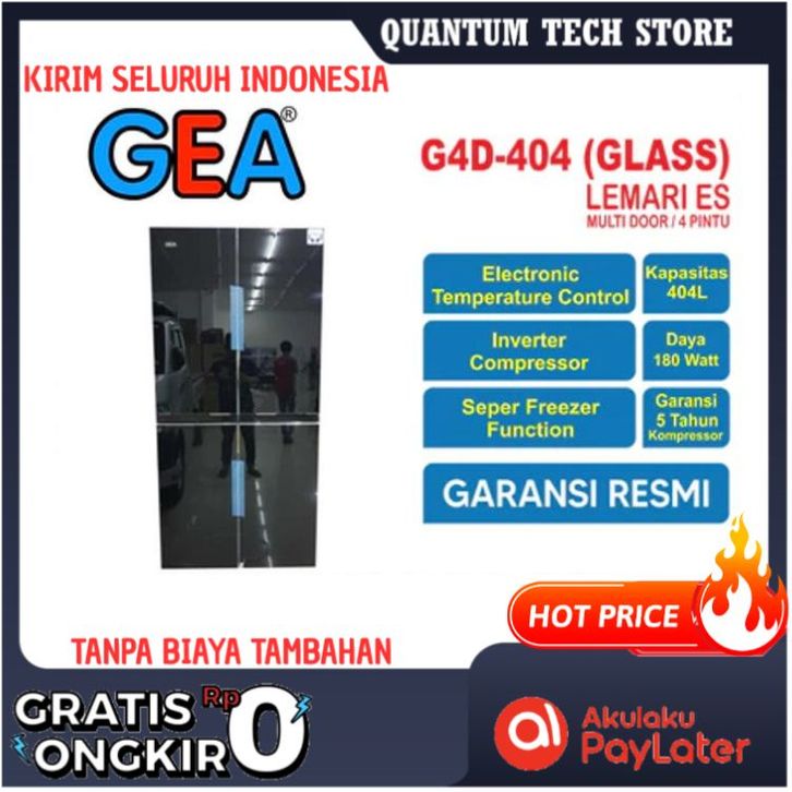 FREE ONGKIR KULKAS GEA G4D 404 LEMARI ES SIDE BY SIDE G4D-404 4 PINTU BLACK GLASS TANPA BUNGA ES GARANSI RESMI