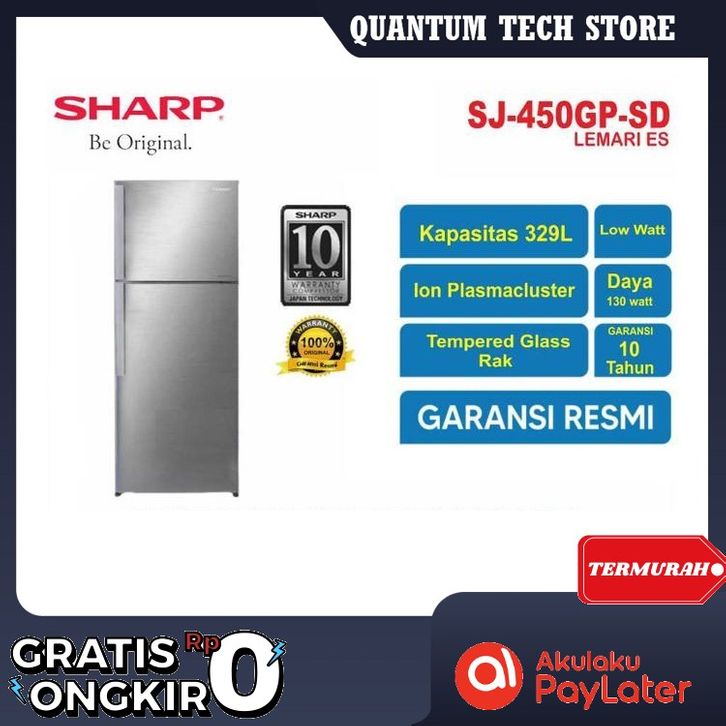 FREE ONGKIR KULKAS SHARP SJ 450 GPSD / AQR 355 IG / G2D 472 INOX / PRS 451 LEMARI ES 2 PINTU GARANSI RESMI