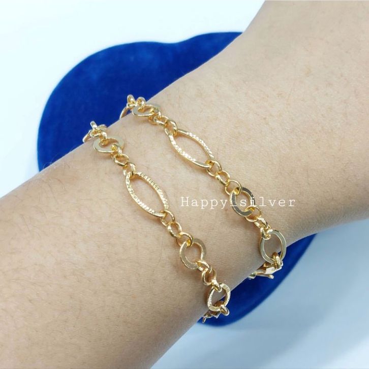 GELANGG TANGAN PERAK ASLI SILVER 925 LAPIS EMASS PUTIH MODEL RANTAI OVAL UKIR PERAK ASLI SILVER 925