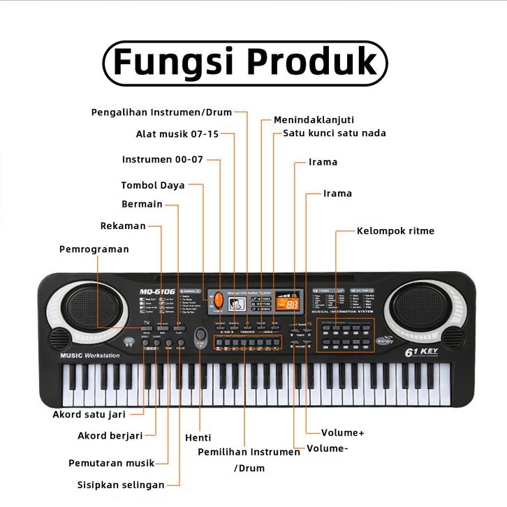 BABYCOLOR Mainan Anak Piano Elektronik 61 Keys / Keyboard Electronic 61 Keys Lengkap Mic Dan Charger