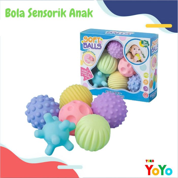 TokoYoyo Mainan Anak Bola Sensorik Motorik Bayi Bola Edukasi Soft Sensory Balls 6 Pcs