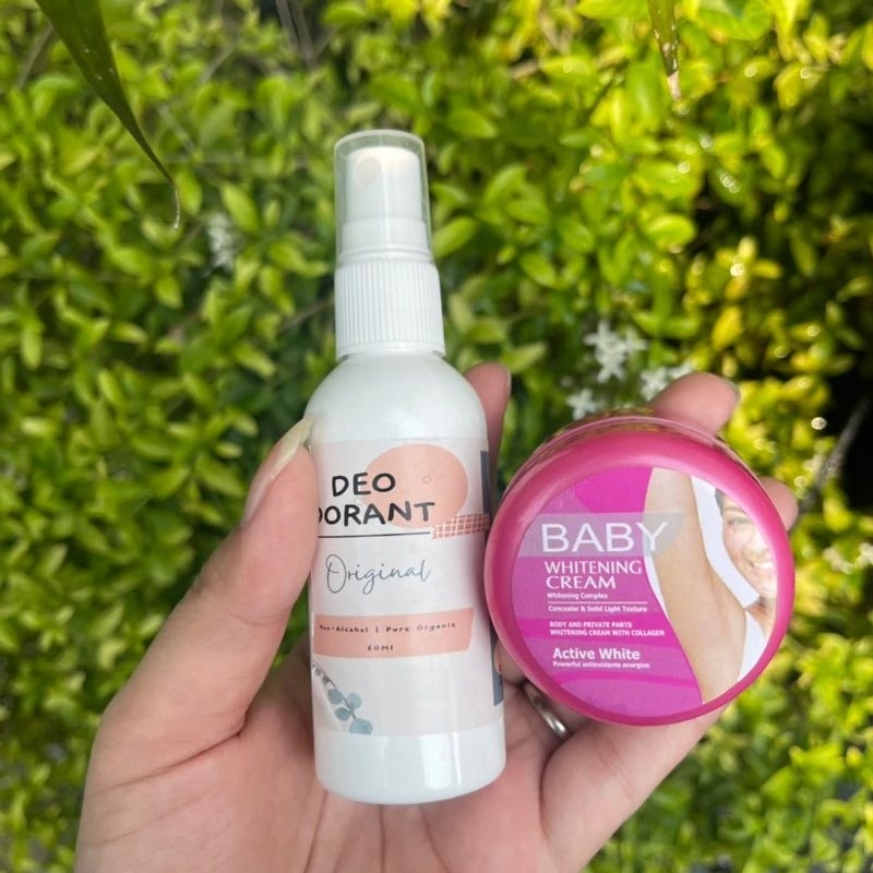 ( BPOM ) PAKET GLOWING 2IN1 [ DEODORANT + WHITENING CREAM ]