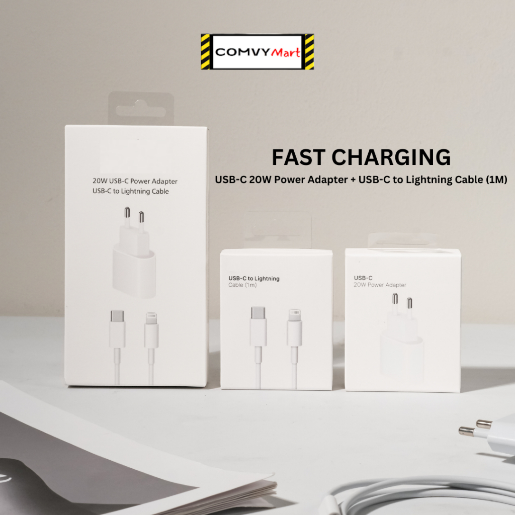 GARANSI 1 TAHUN Comvy Mart Charger iPhone Adaptor 20Watt Fast Charging USB C to Light