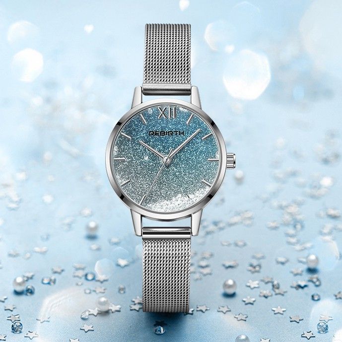 REBIRTH Jam Tangan Wanita Original Anti Air Pasir Apung Dial Santai Mode Tali Jala Jam Wanita Kecil Jam Tangan Cewek