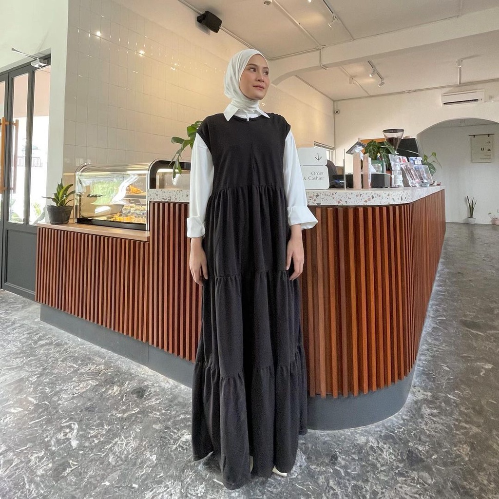 BASIC INNER REMPEL DRESS FLARE BAHAN JERSEY TANPA LENGAN - INER GAMIS WANITA BLAZER TEBAL NYAMAN TERBARU