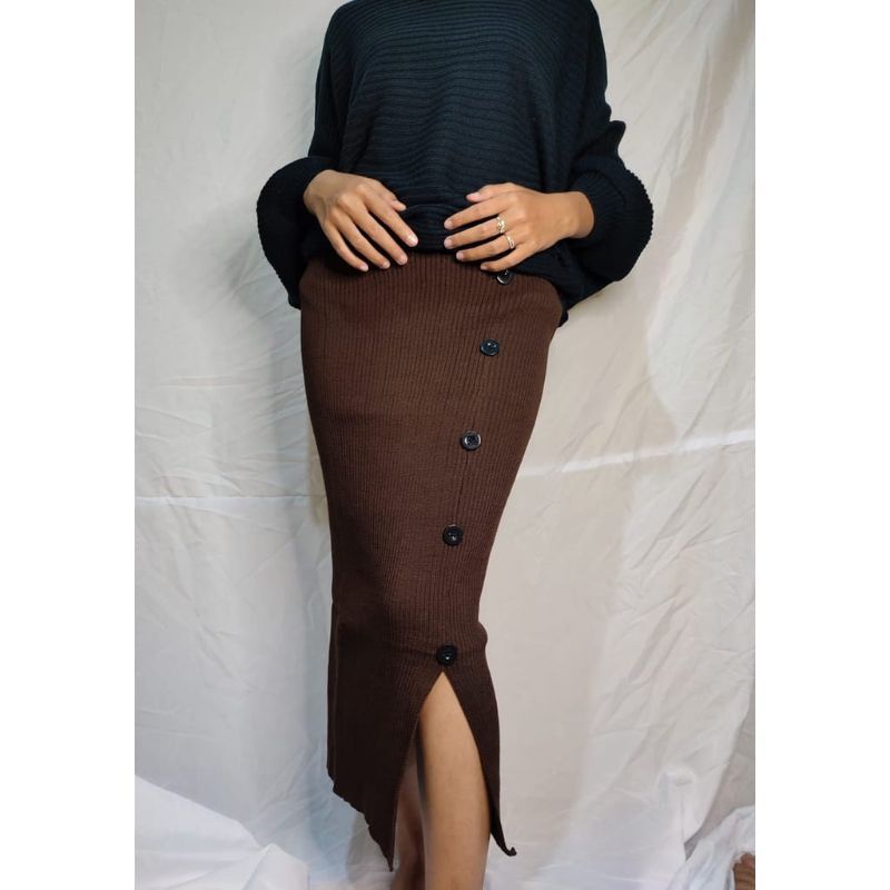 ROK SPAN RAJUT KANCING BELAH PINGGIR#ROK MIDI SKRID PREMIUM