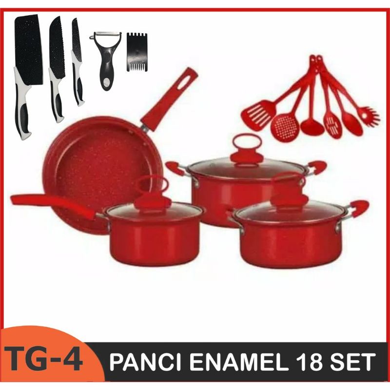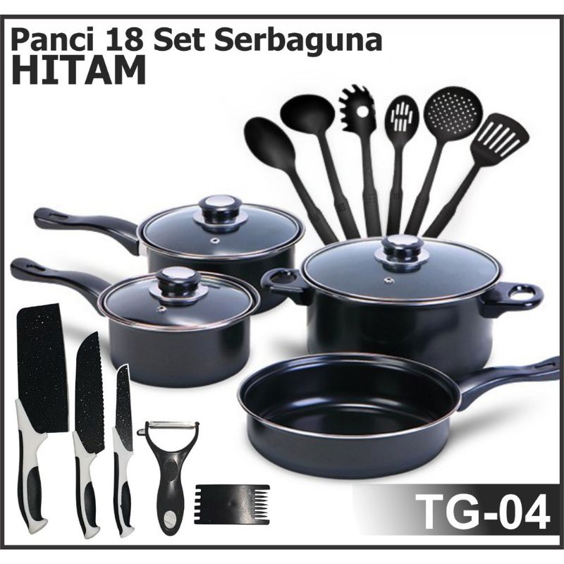 PROMO PROMO Panci Teflon Marble 18 pcs Cookware Set Tutup Kaca