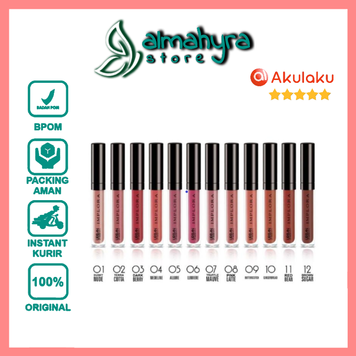 IMPLORA Urban Lip Cream Matte / Lipstick Matte / almahyra store / skincare glowing original / pria wanita / official /