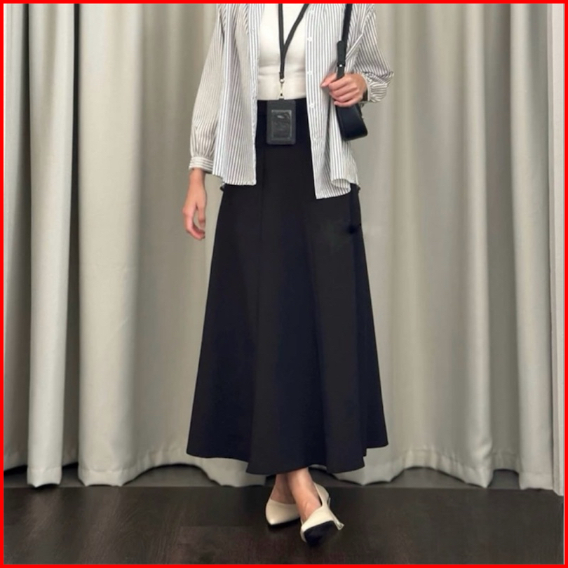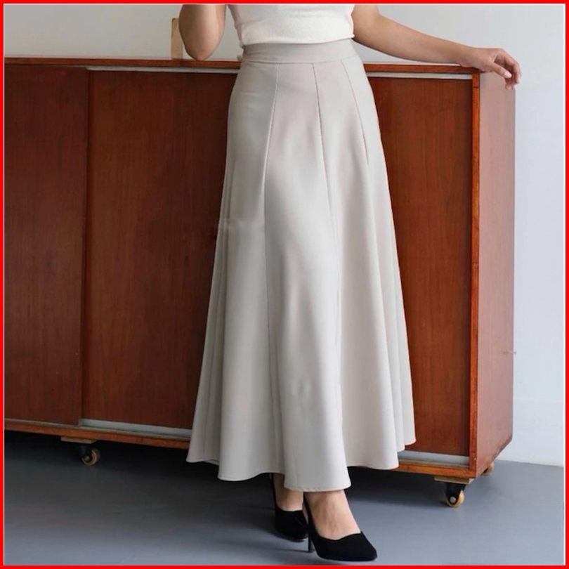 Audy Skirt - Korean Loose Maxi Skirt Rok Wanita Anti Kusut Polyester - Rok Flare Wanita - Rok Basic Polos - Maxi Skirt R