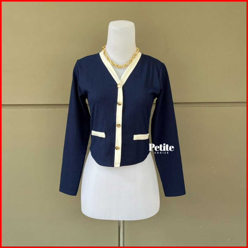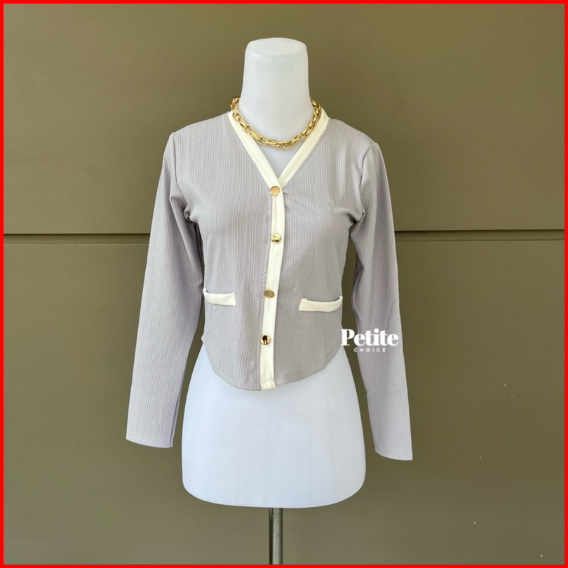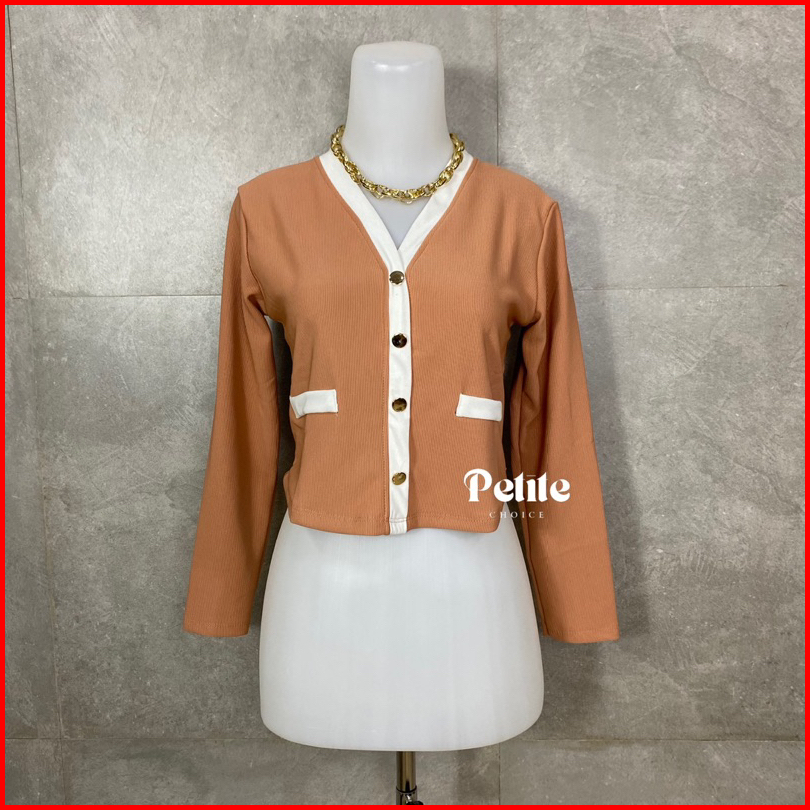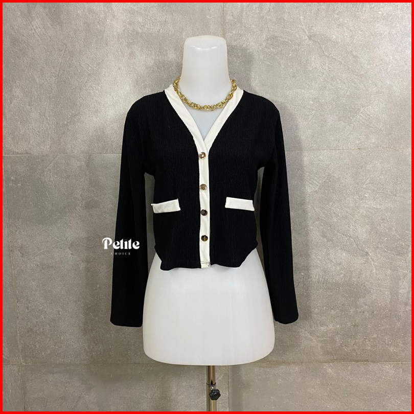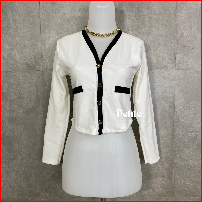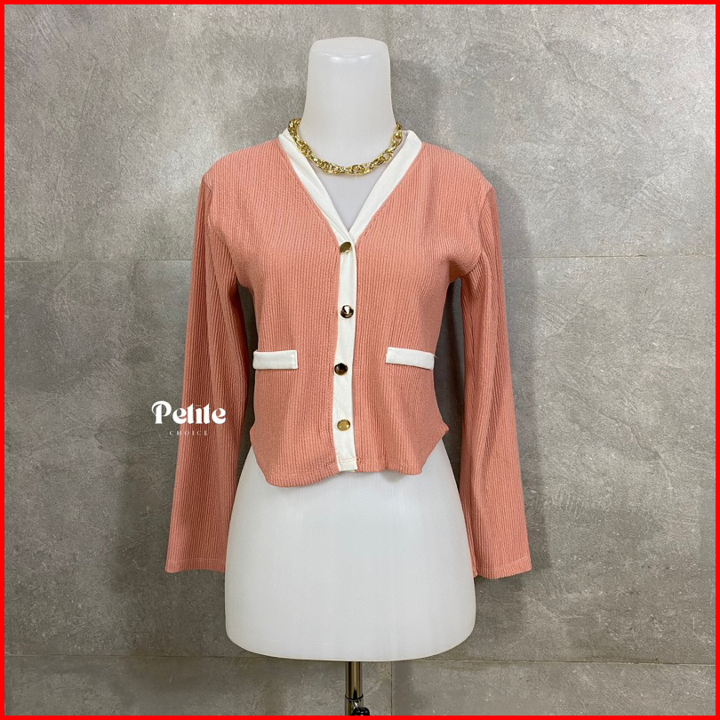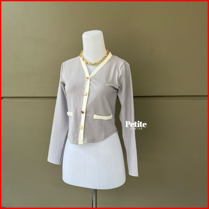 Petitechoice Elena Top - Long Sleeve Knit Stretch Korean Style Button Wanita Knitwear Panjang