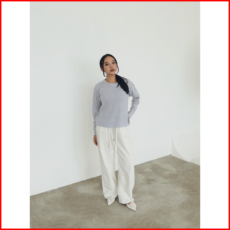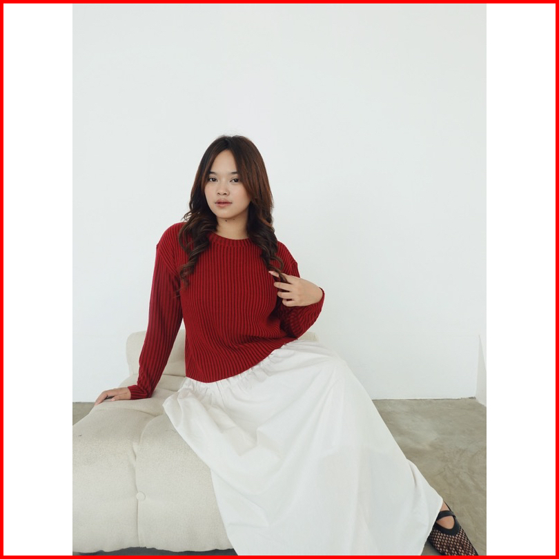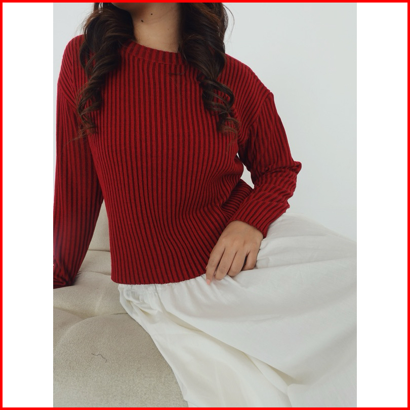 Puff It Up Cropped Knit Top Cropped Knit Sweater Sweater Garis Knit Atasan Sweater