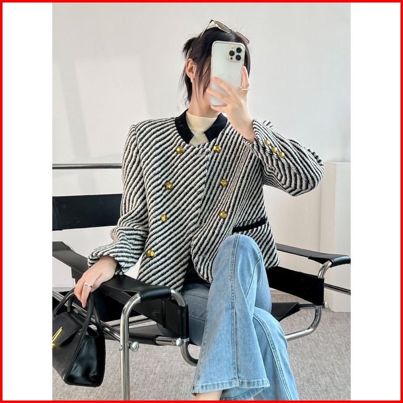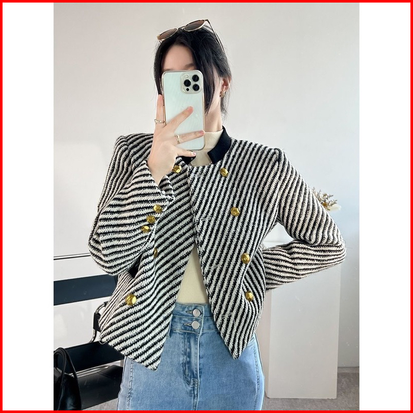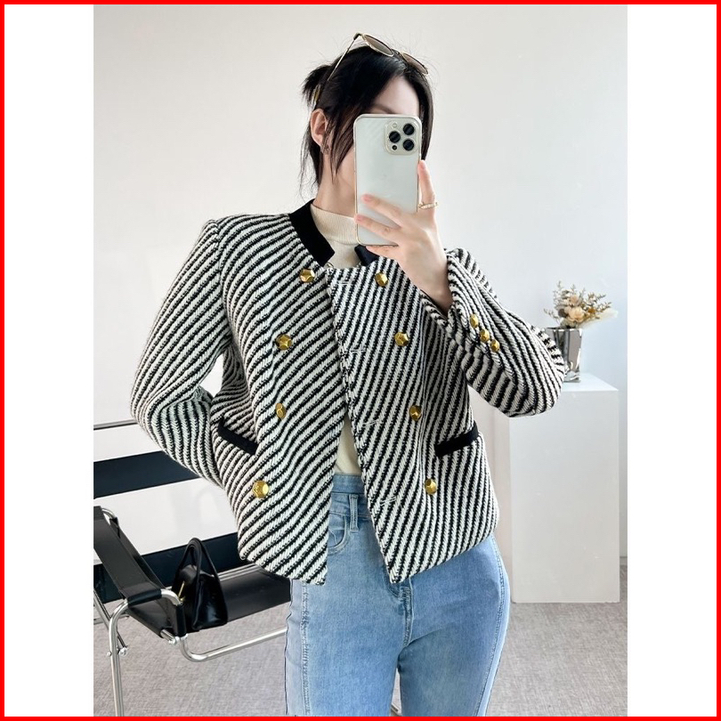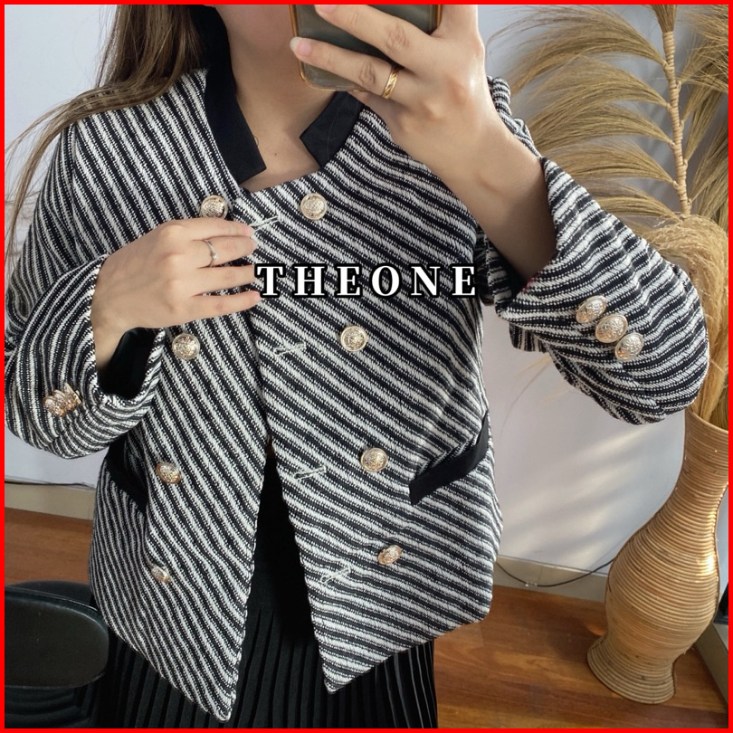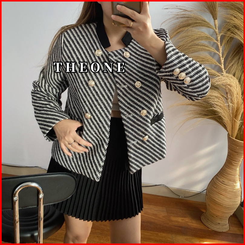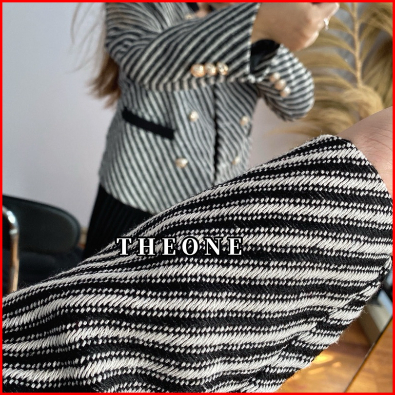 The0ne Big Size Coat Loose Fashion Tweed Striped Blazer S-xl