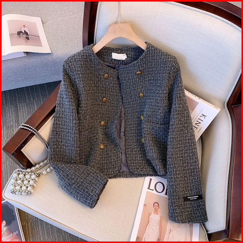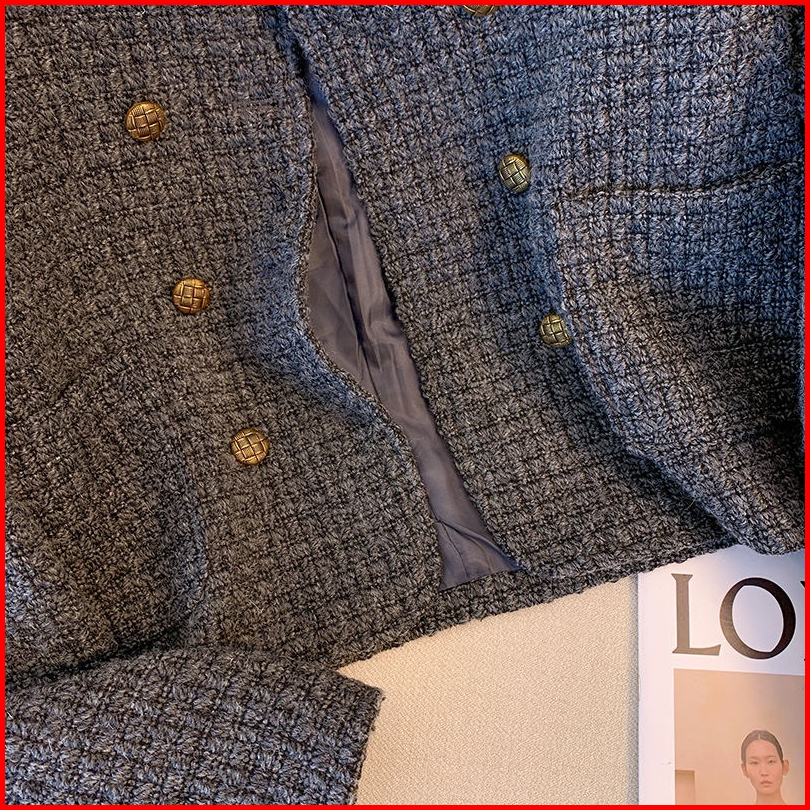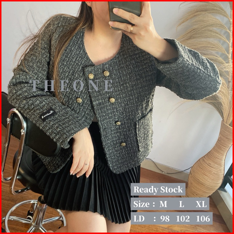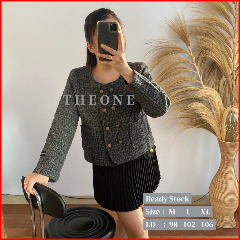 The0ne New Tweed Blazer Dark Grey With Double Breasted M-l-xl Blazer Tweed Abu Premium Tweed Blazer Korean Style High Qu