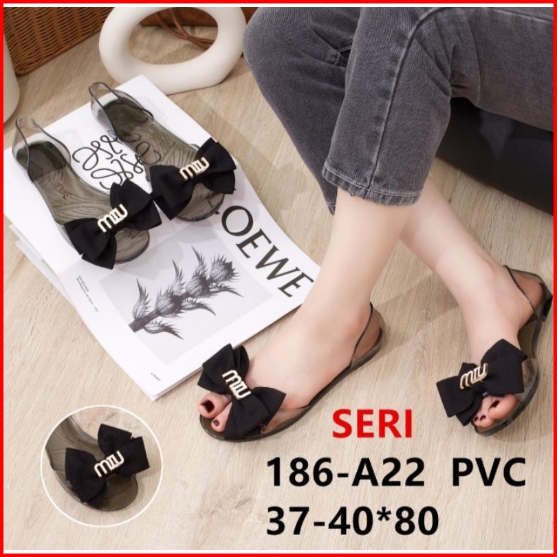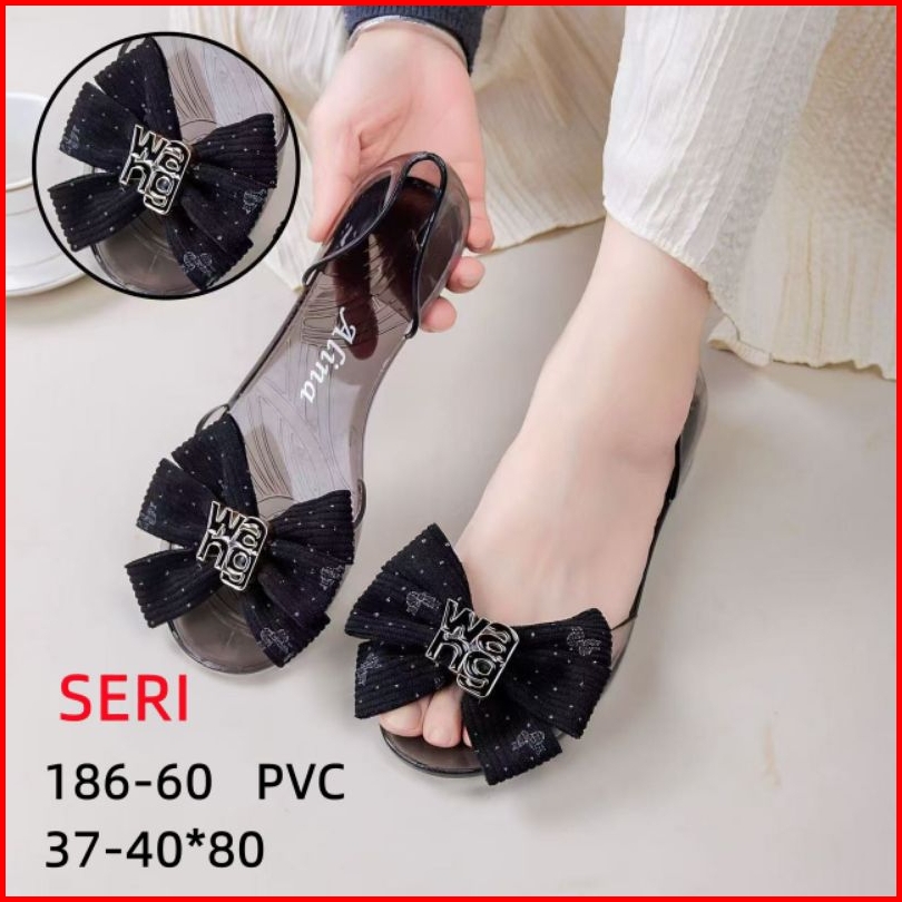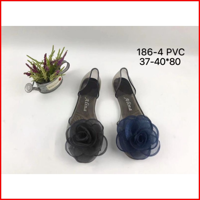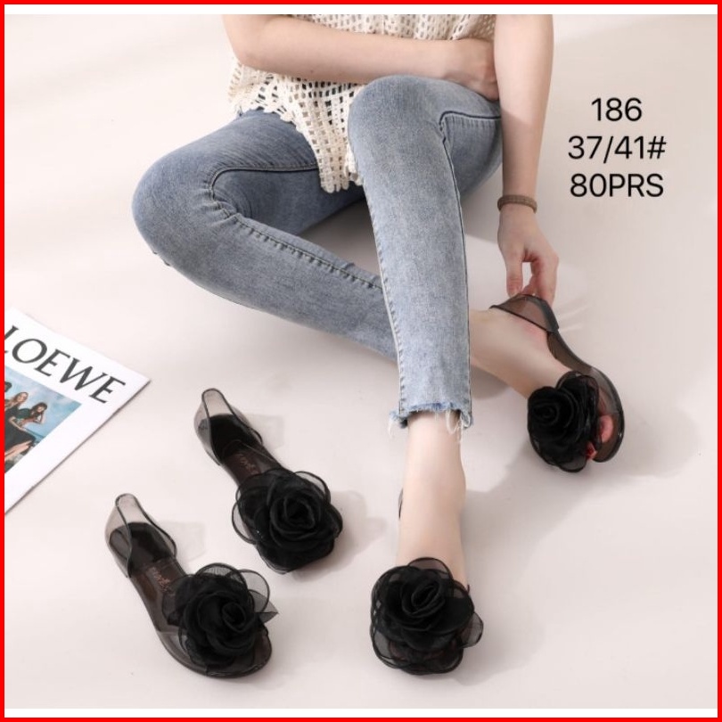 Sepatu Jelly Wanita Karet Import Flatshoes Teplek Kaca Motif Bunga Bahan Elastis Non-slip 186-4