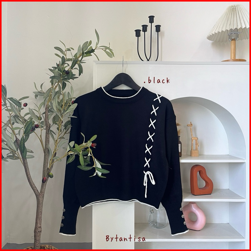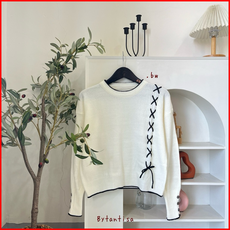 Bytantisa - Blouse Rajut Kamari Tali Pita Lengan Kancing