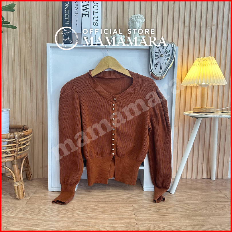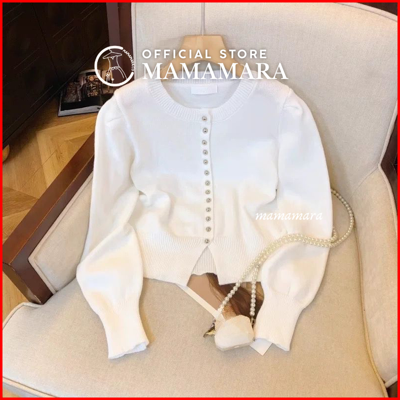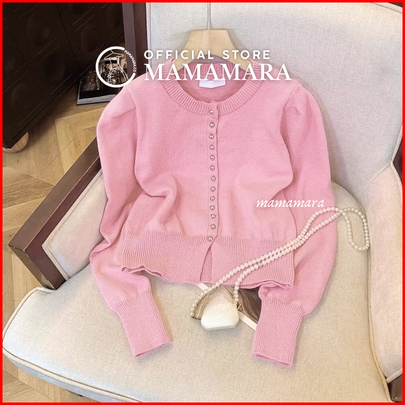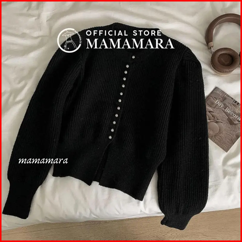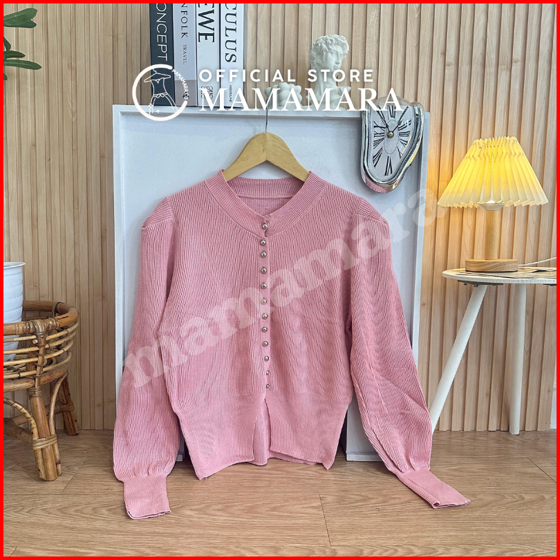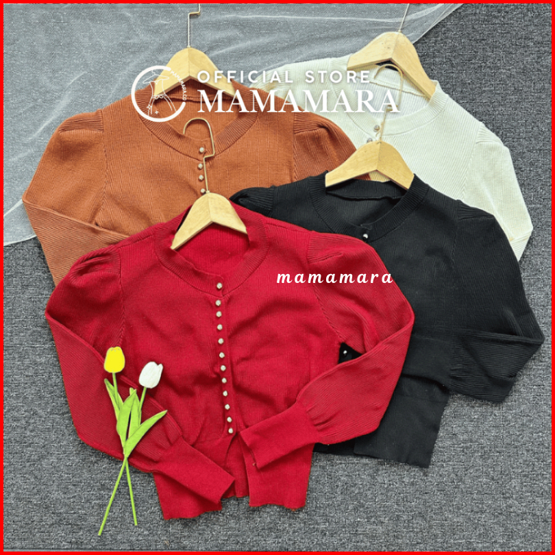 Mamamara - Atasan Rajut Blouse Wanita Knitwear Kancing Pearl Round Neck Simple