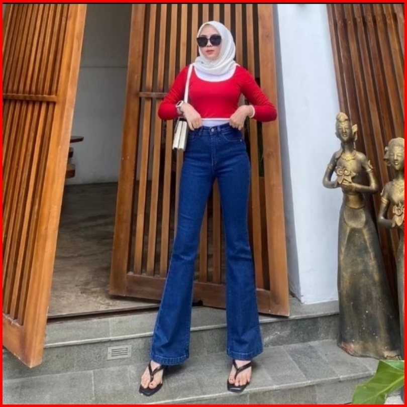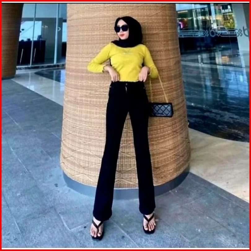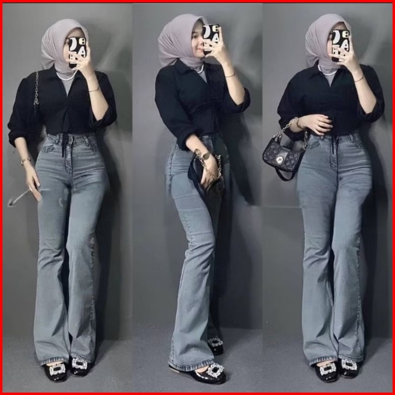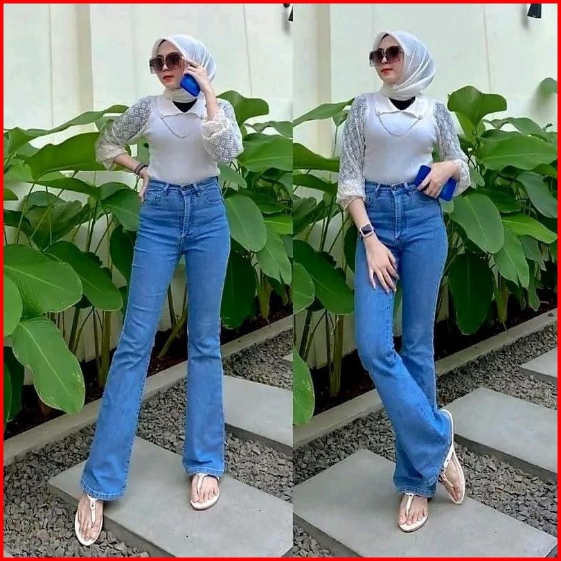Celana Panjang Jeans Cutbray Highwaist Strecht