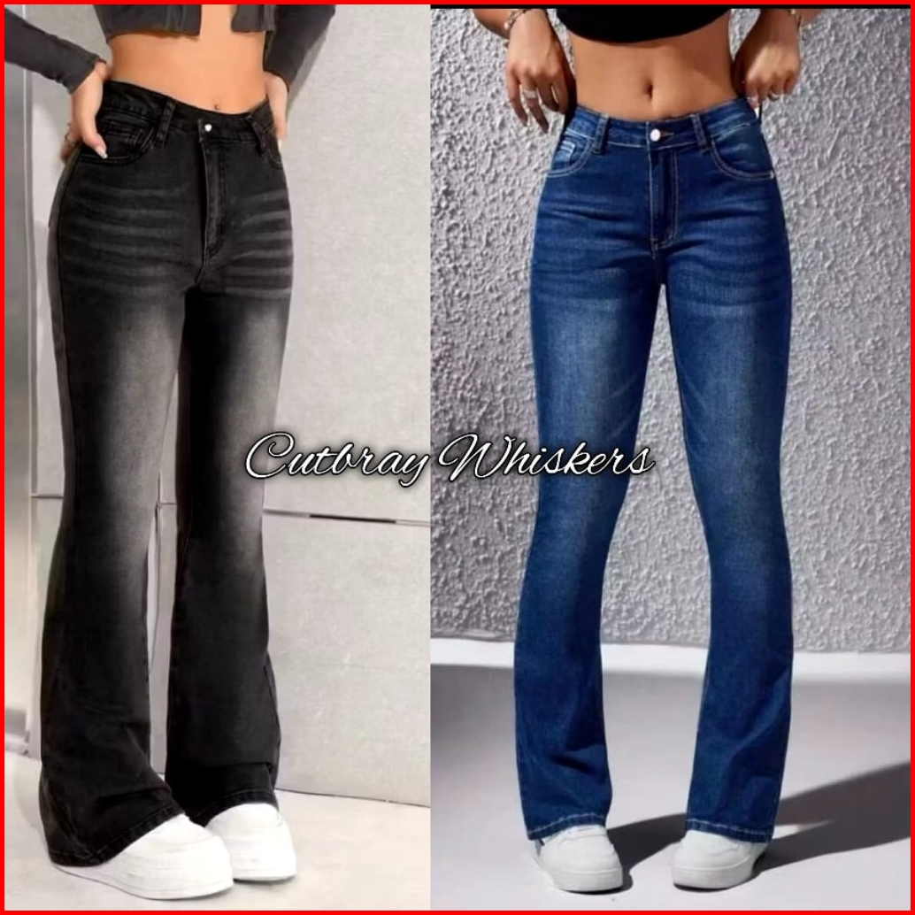 Highwaist Cutbray Jeans Retro Whisker Wanita Celana Cutbray Jeans Wanita Premium