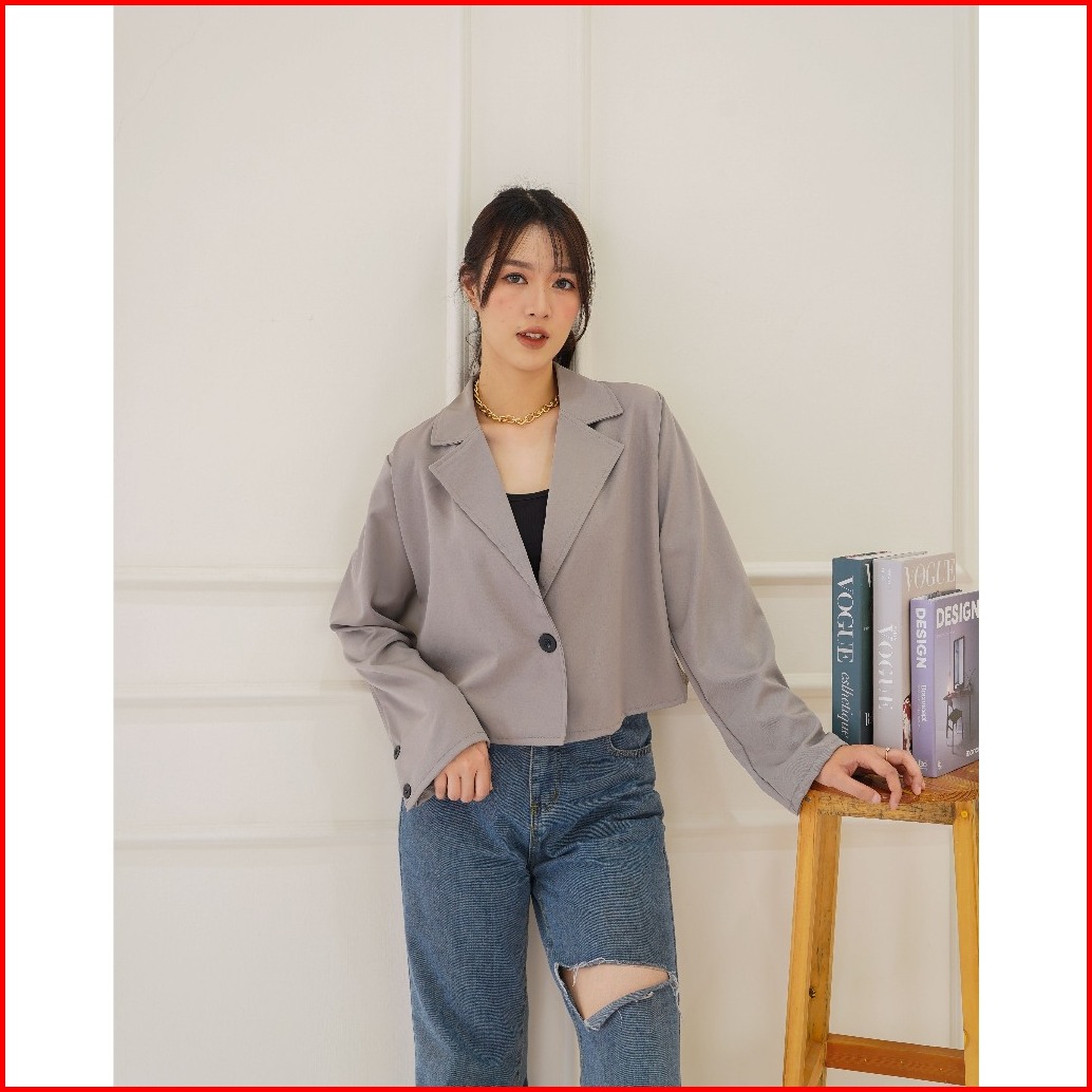 Jennie Crop Oversize Blazer Premium Tebal Outer Wanita 2545