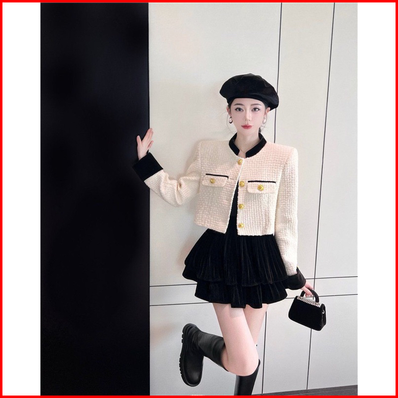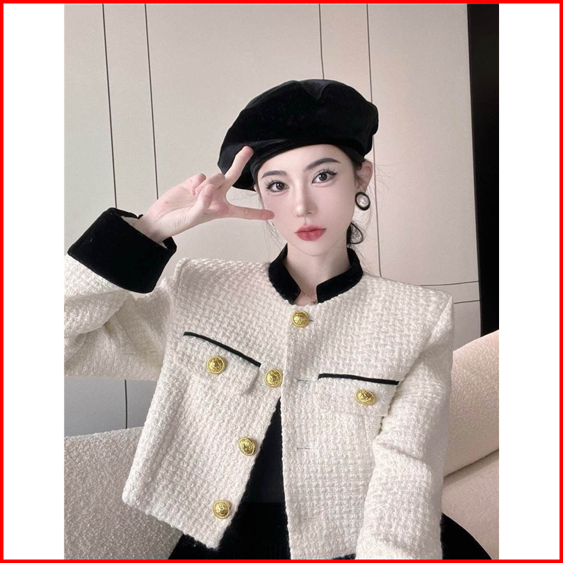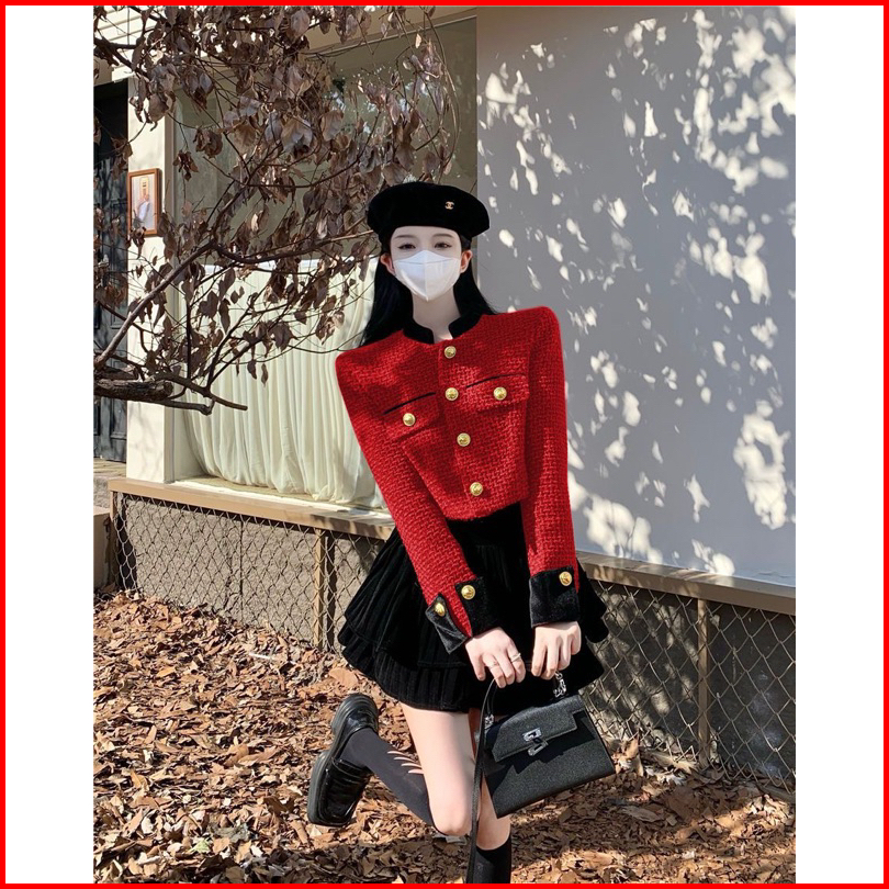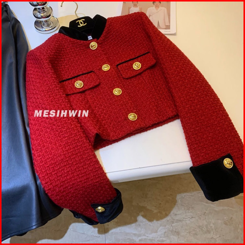 Tweed Blazer Cropped Wool Red-white-grey Full Furing 100 S M L