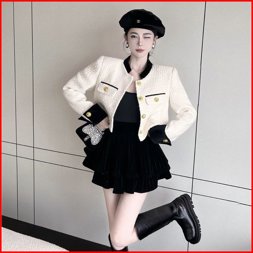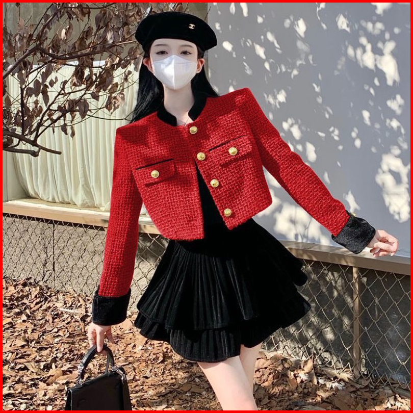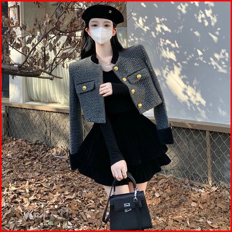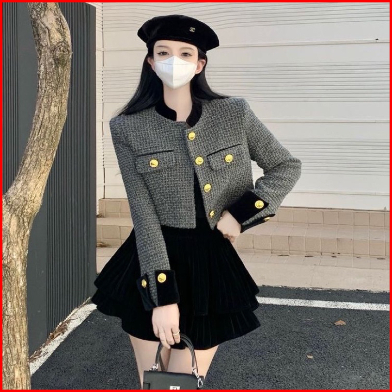 Ww.coid Crop Blazer Tweed Wool Full Furing Premium Quality