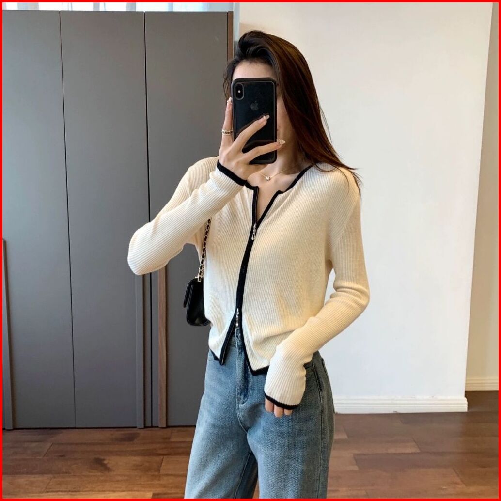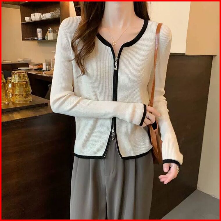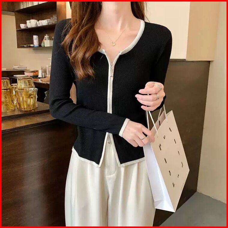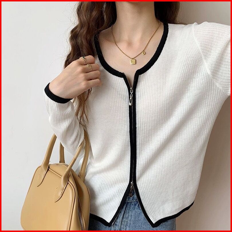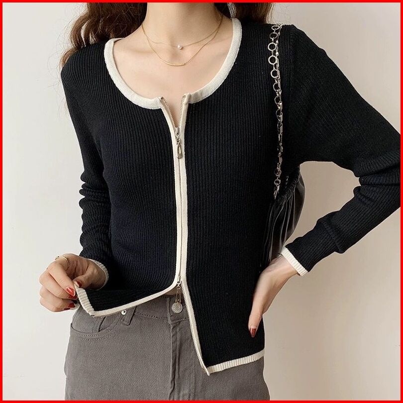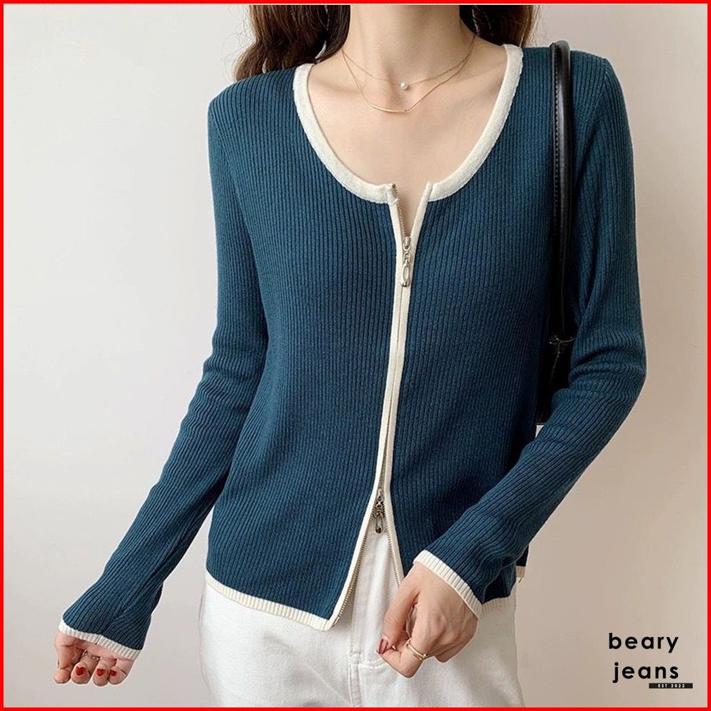 Beary Jeans Bj205 Two Plain Zipper Blouse Knitted Slim Atasan Wanita 2 Resleting Rajut Daily Simple Slim Knitwear Import