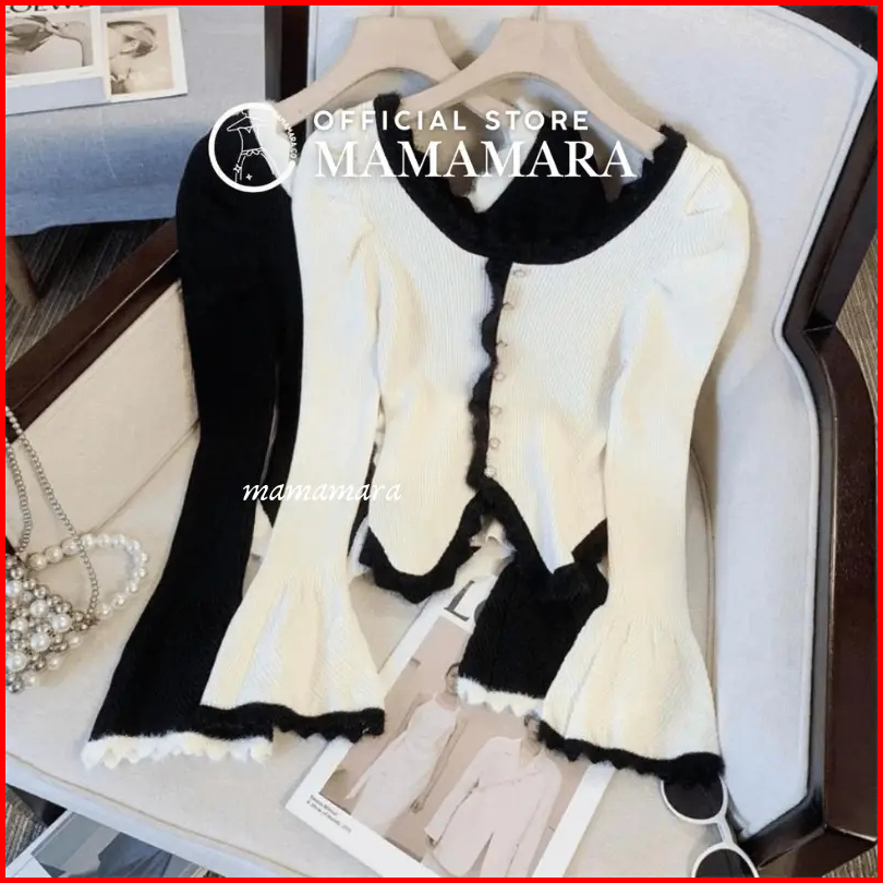 Mamamara - Atasan Wanita Lengan Panjang Flare Knit Premium Baju Vintage Wanita Korean Style