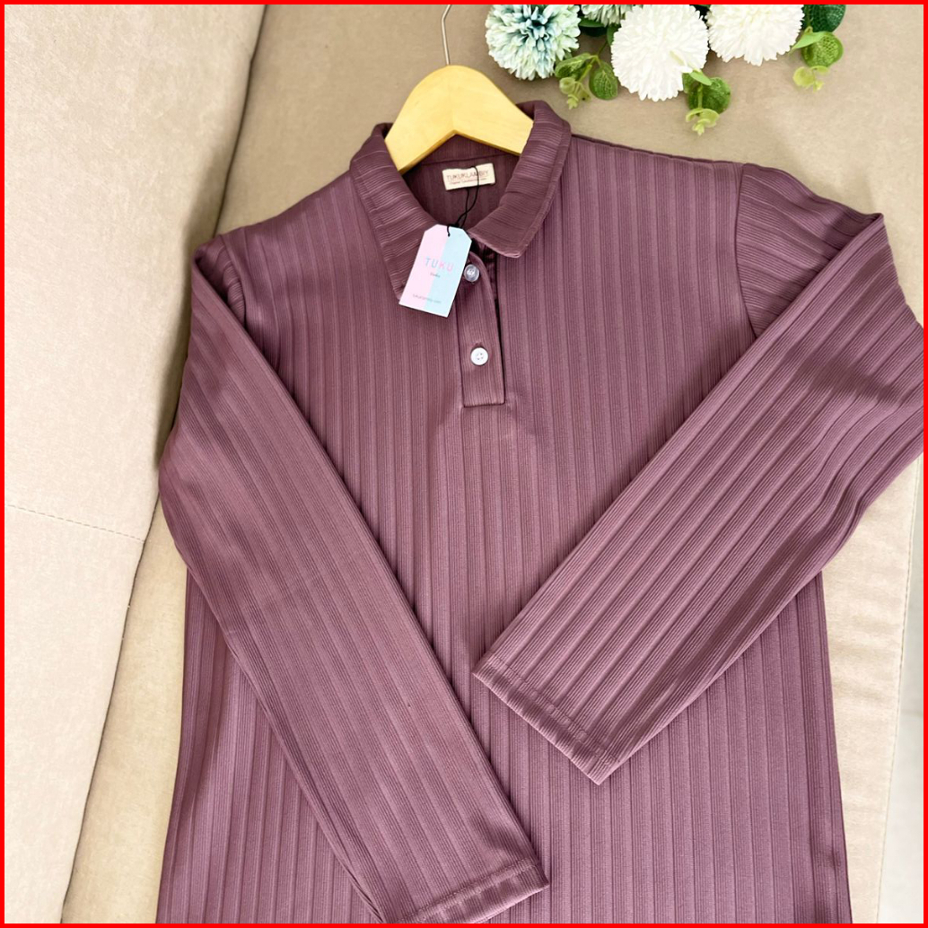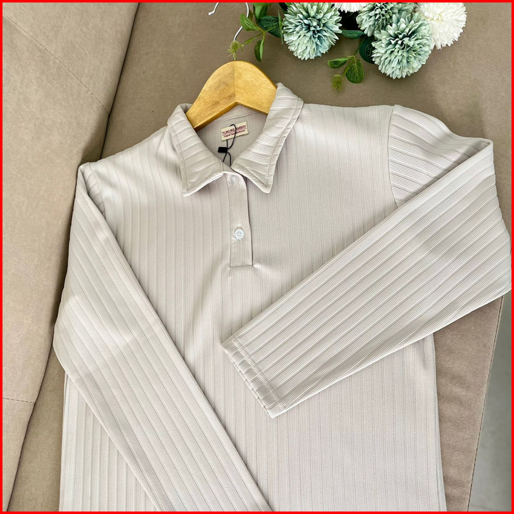 Tukuklambiy Kaos Knitted Polo Shirt - Women Longsleeve - Strech T-shirt
