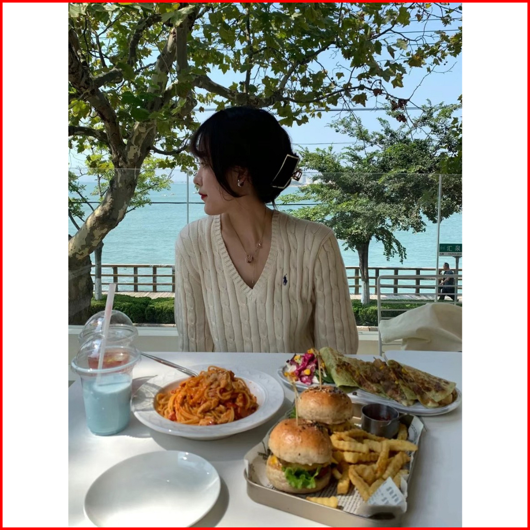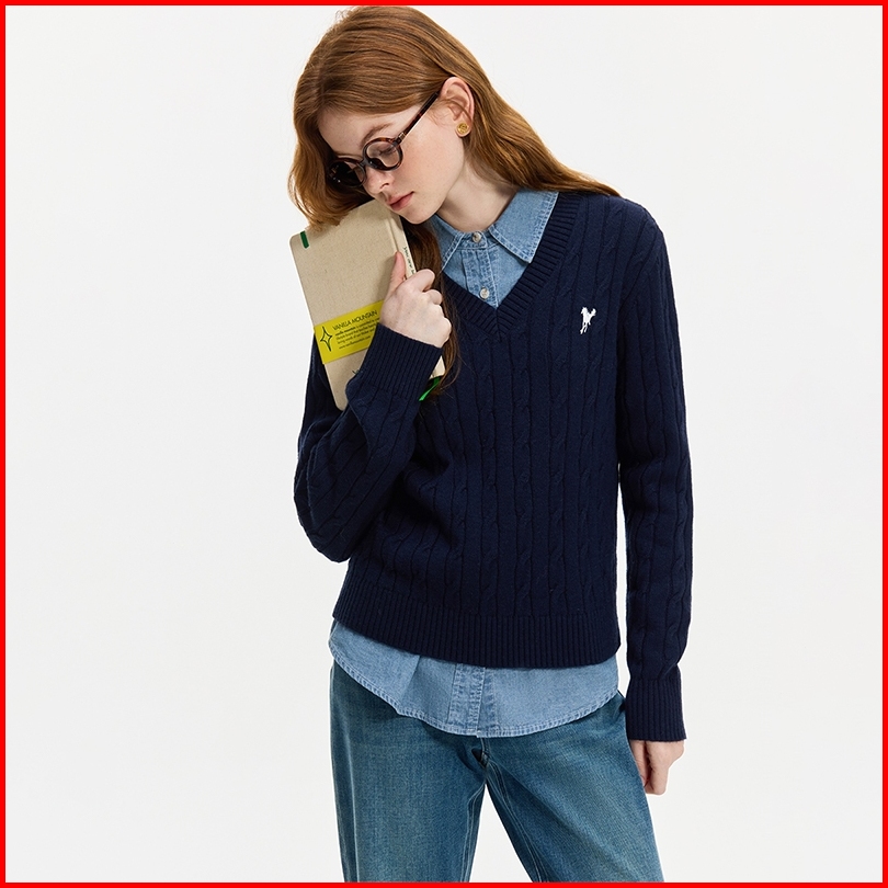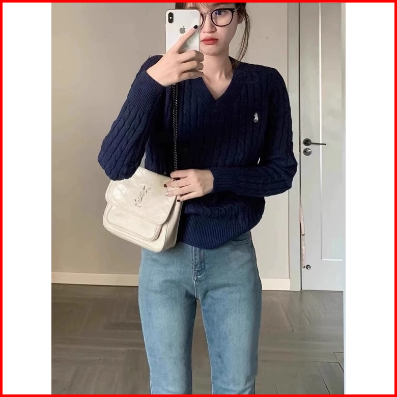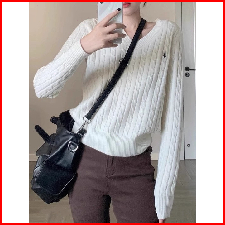 Lady Collection - B04 Kaos Rajut Lengan Panjang Wanita Sweater Slimfit Wanita Sweater Wanita Kerah V-neck Olop