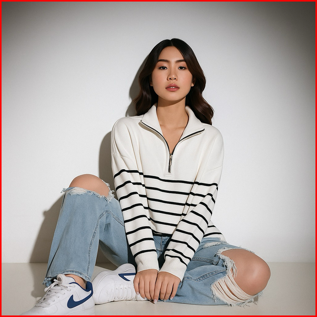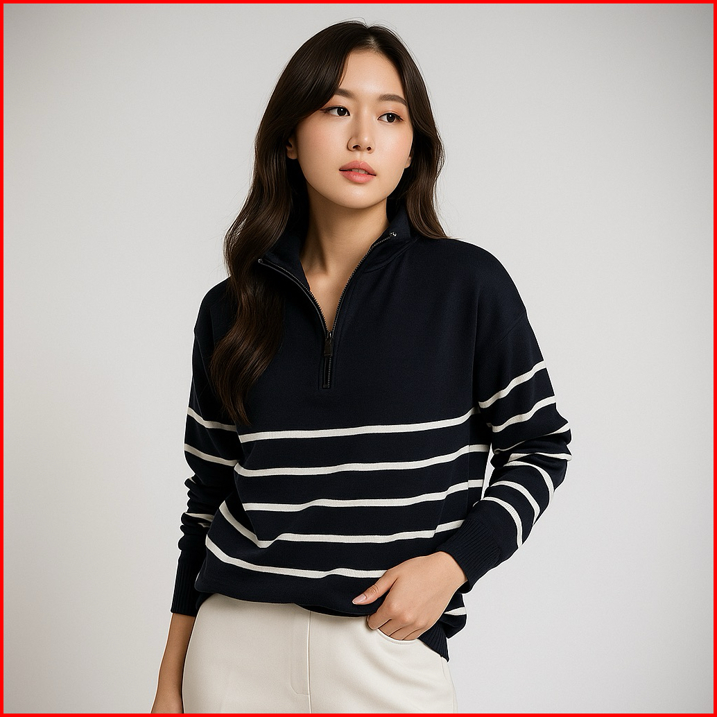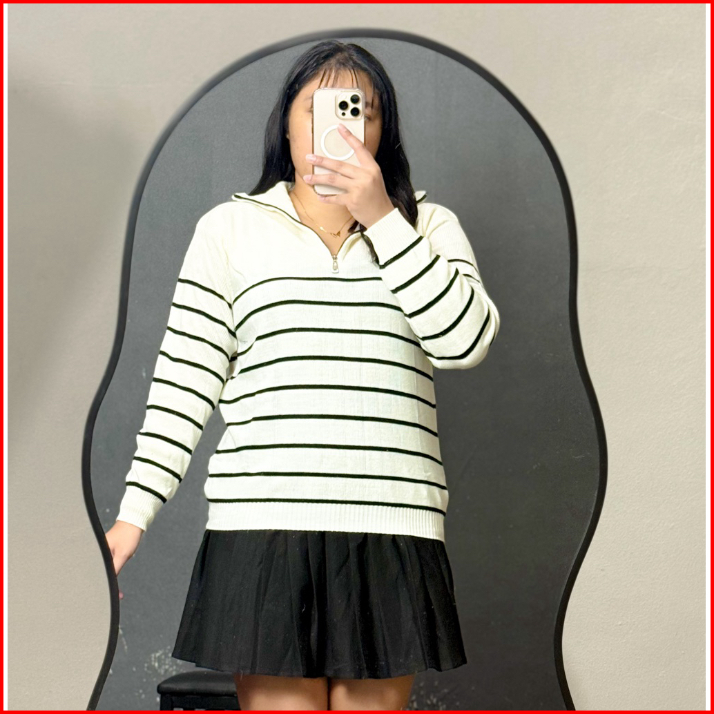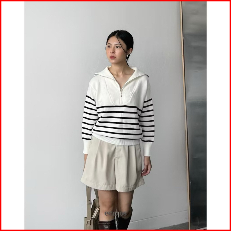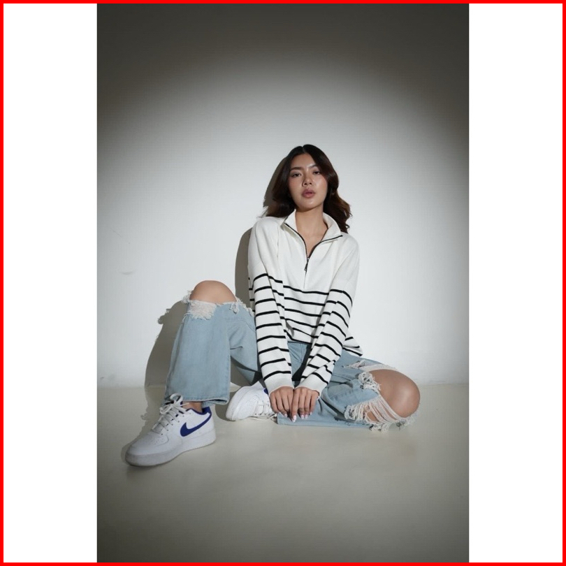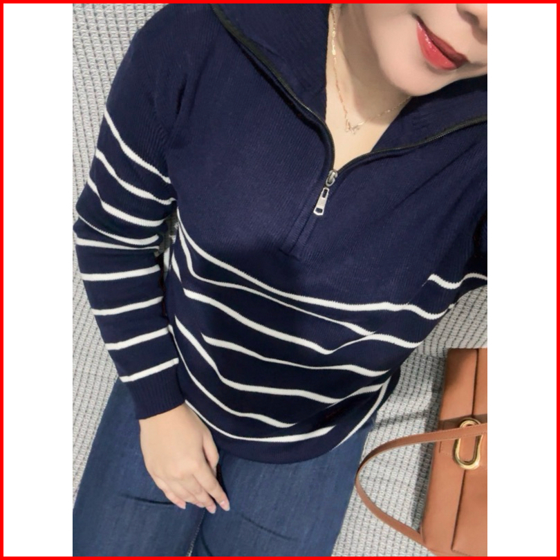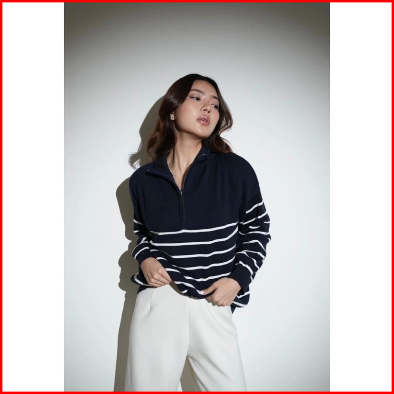 Limited - Claire Knit Top Stripe Zipper With Knit Stripe Kardigan Sweater Wanita
