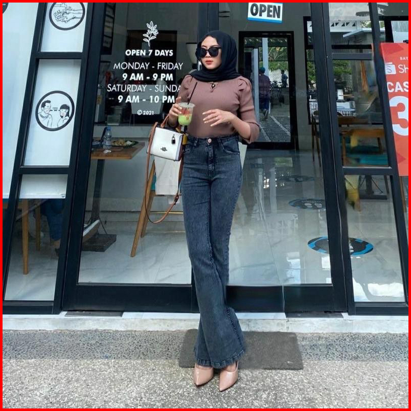 Hw Cutbray Jeans Wanita - Celana Cutbray Strecht Kekinian - Cutbray Flared- Streetch Premium Quality