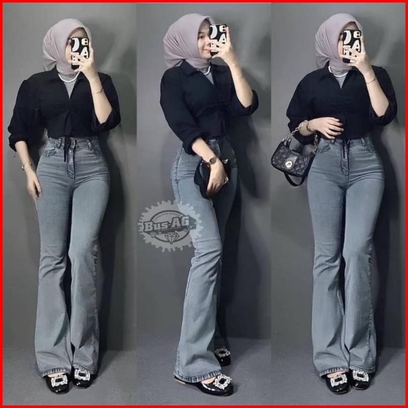 Celana Jeans Wanita Celana Cutbray Highwaist Jeans Cutbray Stetch Melar Kekinian