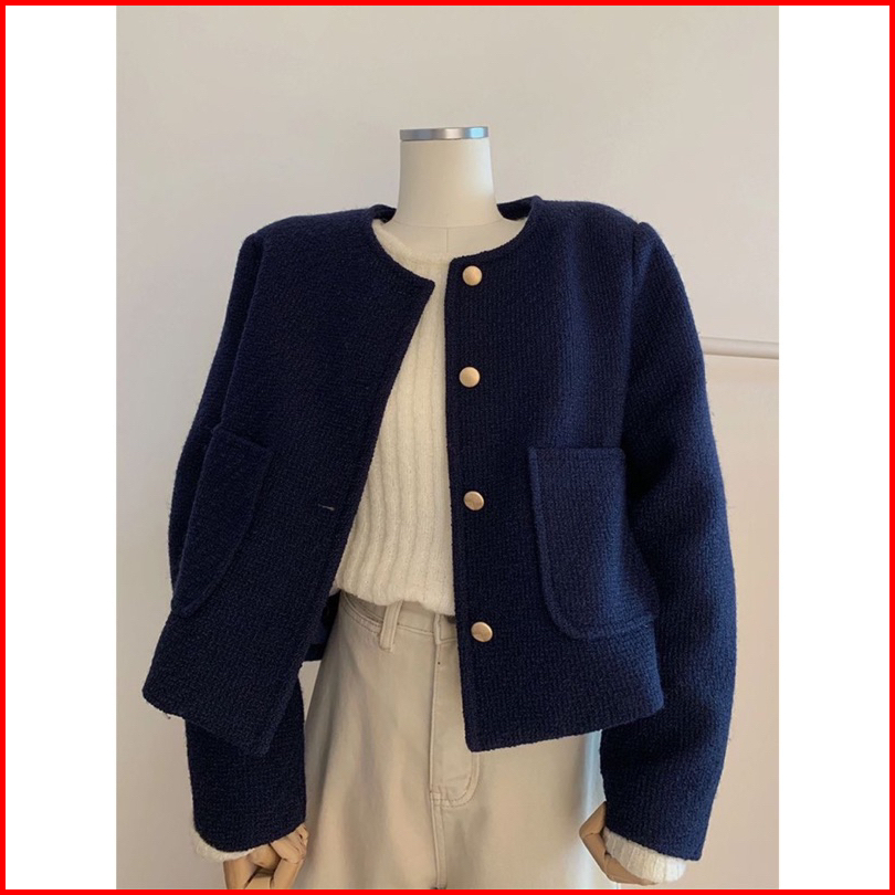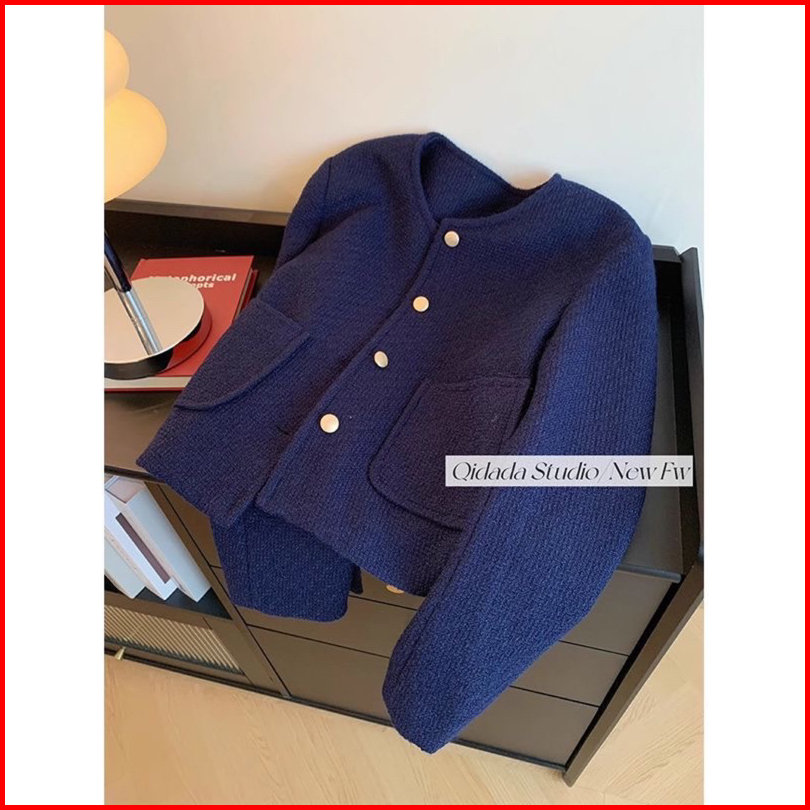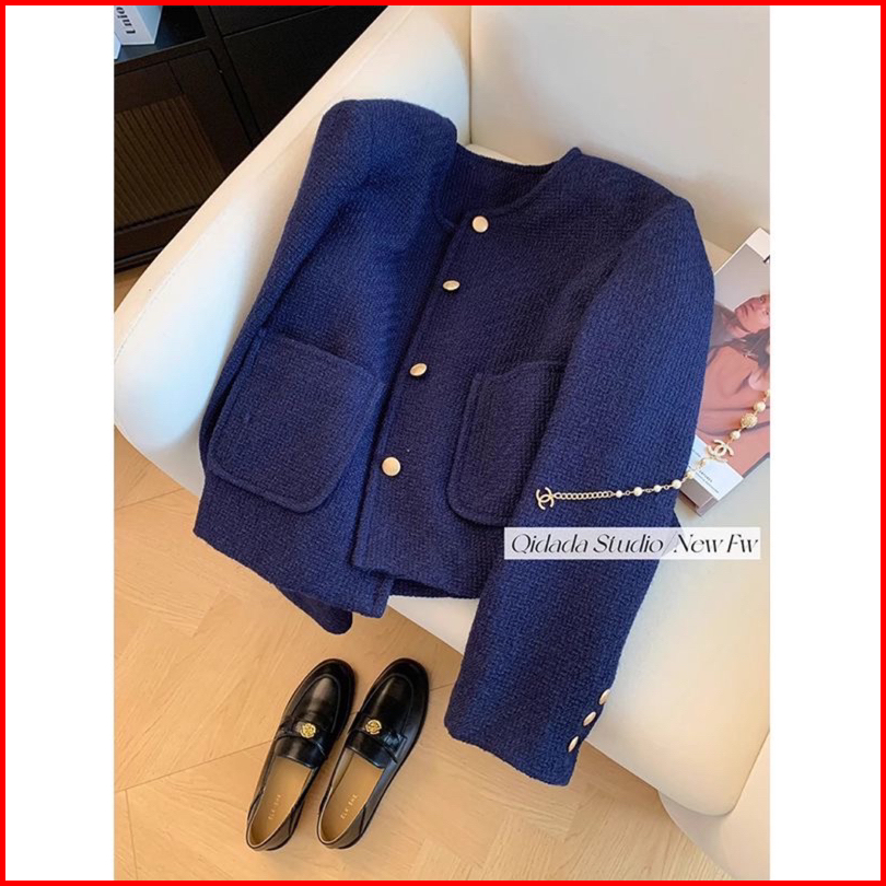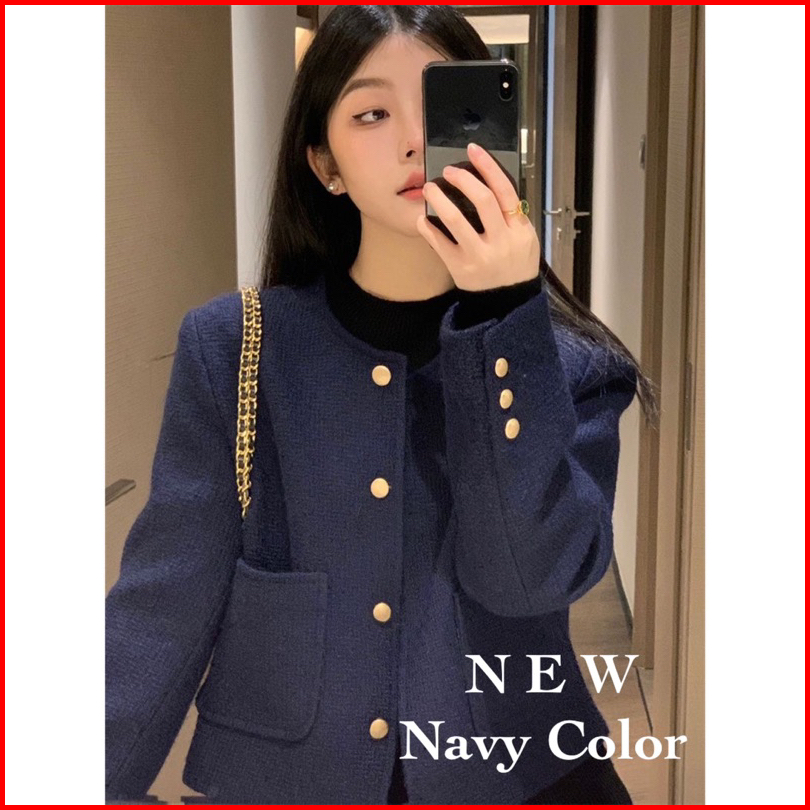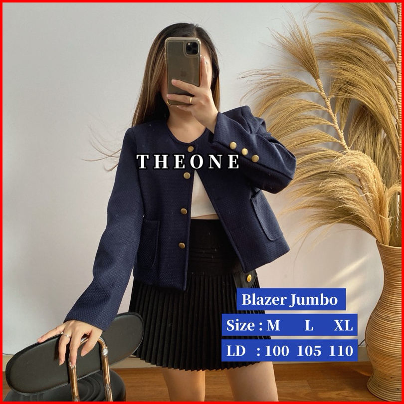 The0ne Bigsize Blazer Tweed Dark Navy Full Furing M-l-xl Blazer Jumbo Tweed Biru Dongker
