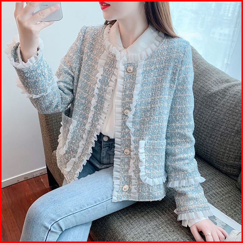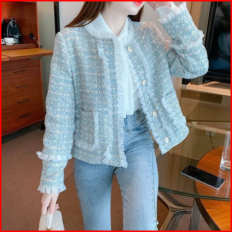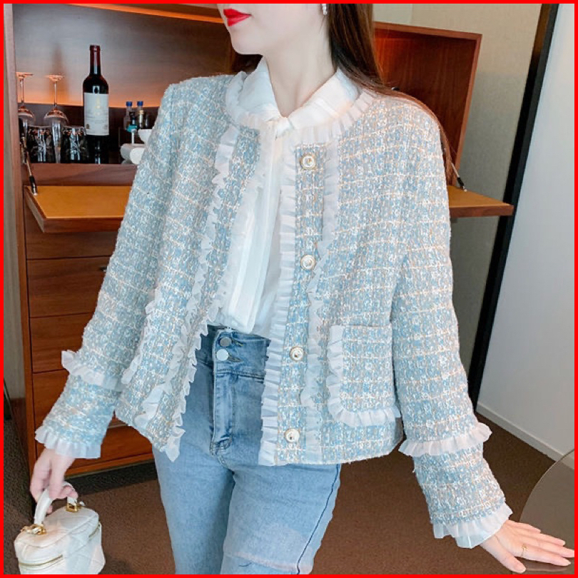 The0ne 3279 Sweety Style New Blazer Tweed Lake Blue S-l-2xl