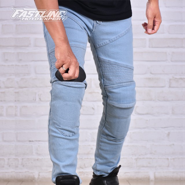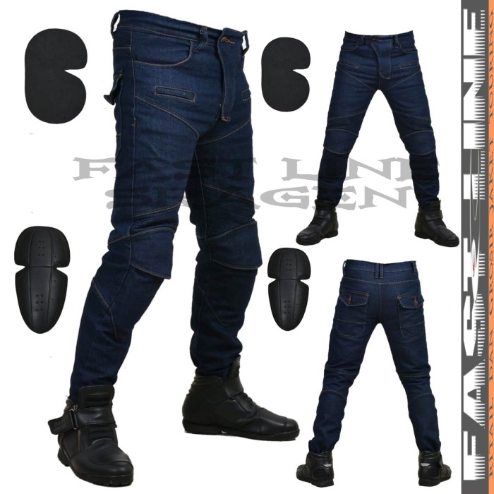 CELANA JEANS BIKER TOURING KEREN GRATIS PROTECTOR LUTUT DAN PINGGANG - HITAM, 30