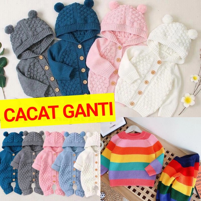 JAKET BAYI RAJUT BAJU CARDIGAN RAJUT BAYI BAJU BAYI JAKET BAYI RAJUT - SWEATER RAINBOW, PINK S 1-2THN