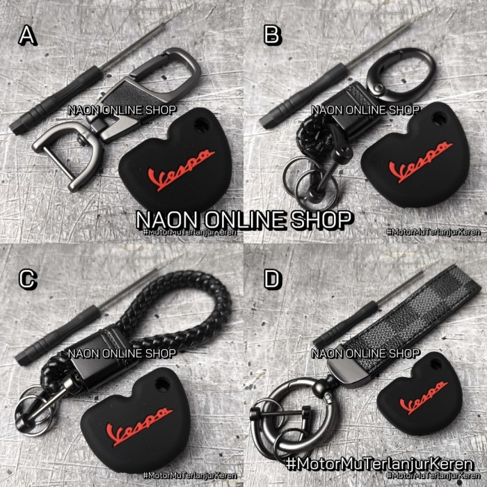 GANTUNGAN KUNCI MOTOR VESPA KULIT KONDOM SILIKON SARUNG KUNCI VESPA - B VES SHORT BLK