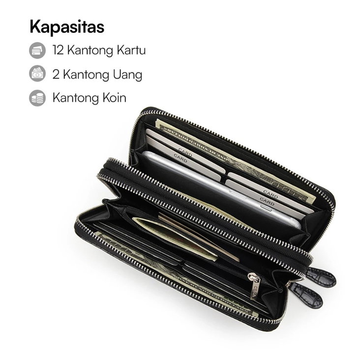 CEKA Dompet Wanita Serbaguna 2 zip Clutch Wanita Card Holder Dompet HP - Nina Long Wallet
