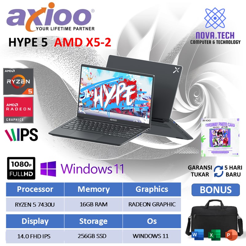 Axioo Hype 5 X5-2 Laptop Ryzen 5 7430 Ram 16gb 256Gb Ssd Windows 11 Garansi Resmi