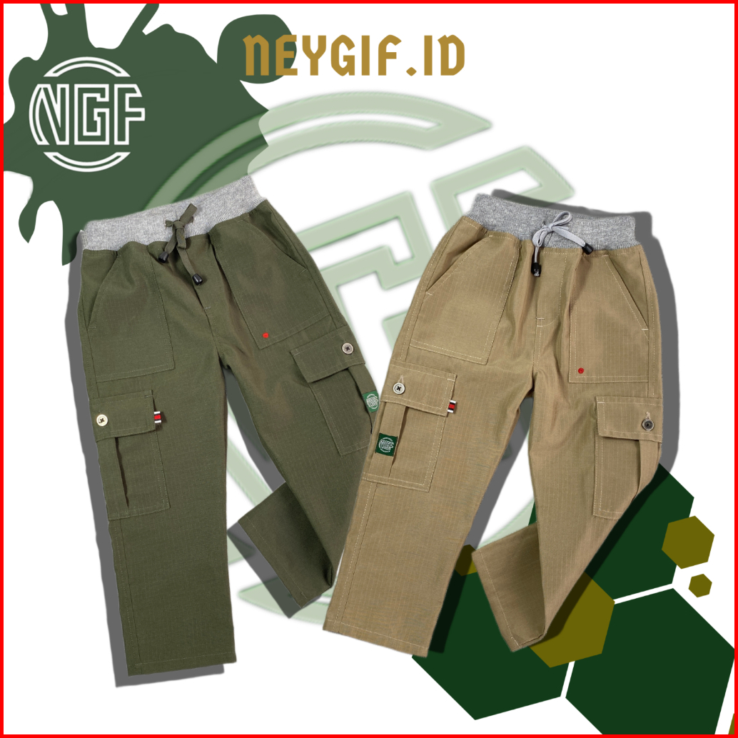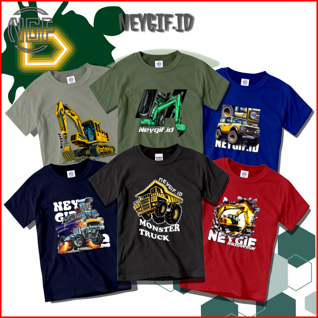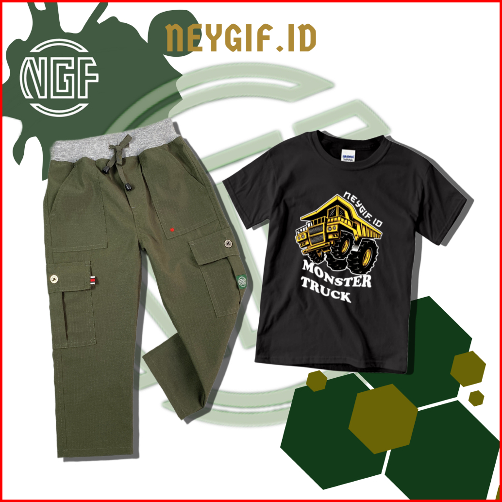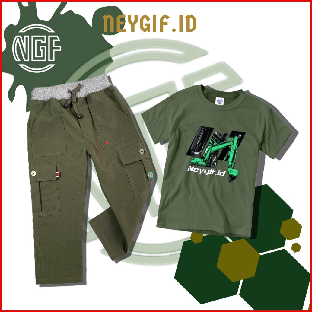 Setelan Anak Oneset Kaos Gambar Excavator Bawahan Celana Cargo Ripstok Panjang Untuk Usia 4-12 Tahun