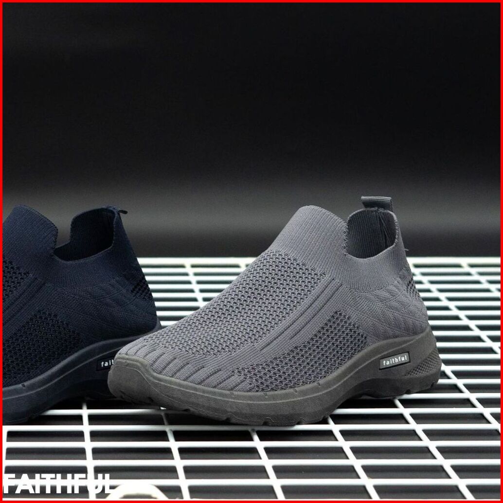 Findme 39-44 Sepatu Sneakers Pria Faithful Kekinian Praktis Nyaman Olahraga Keren Bahan Flyknit Import
