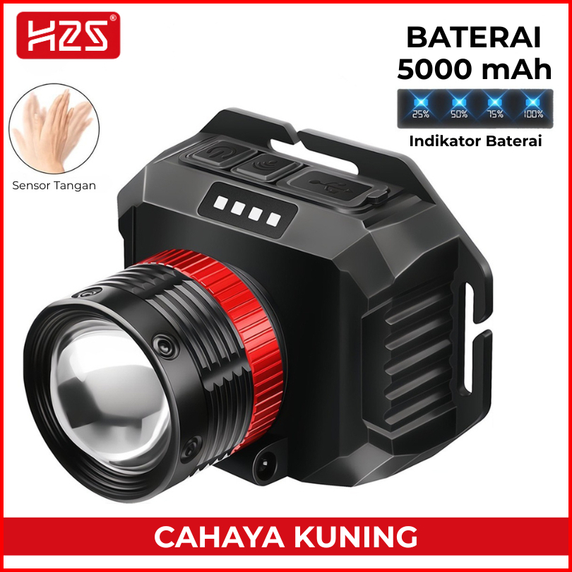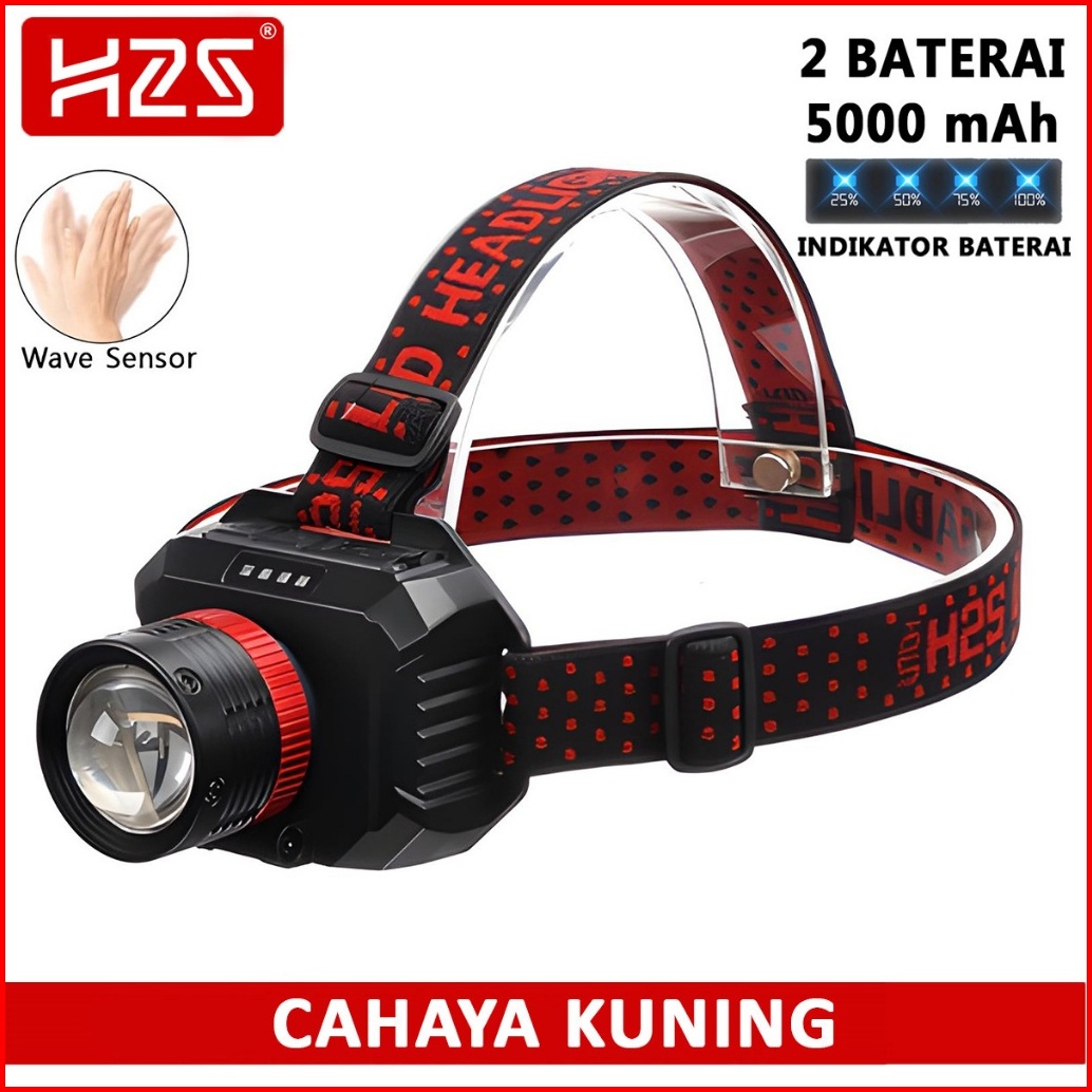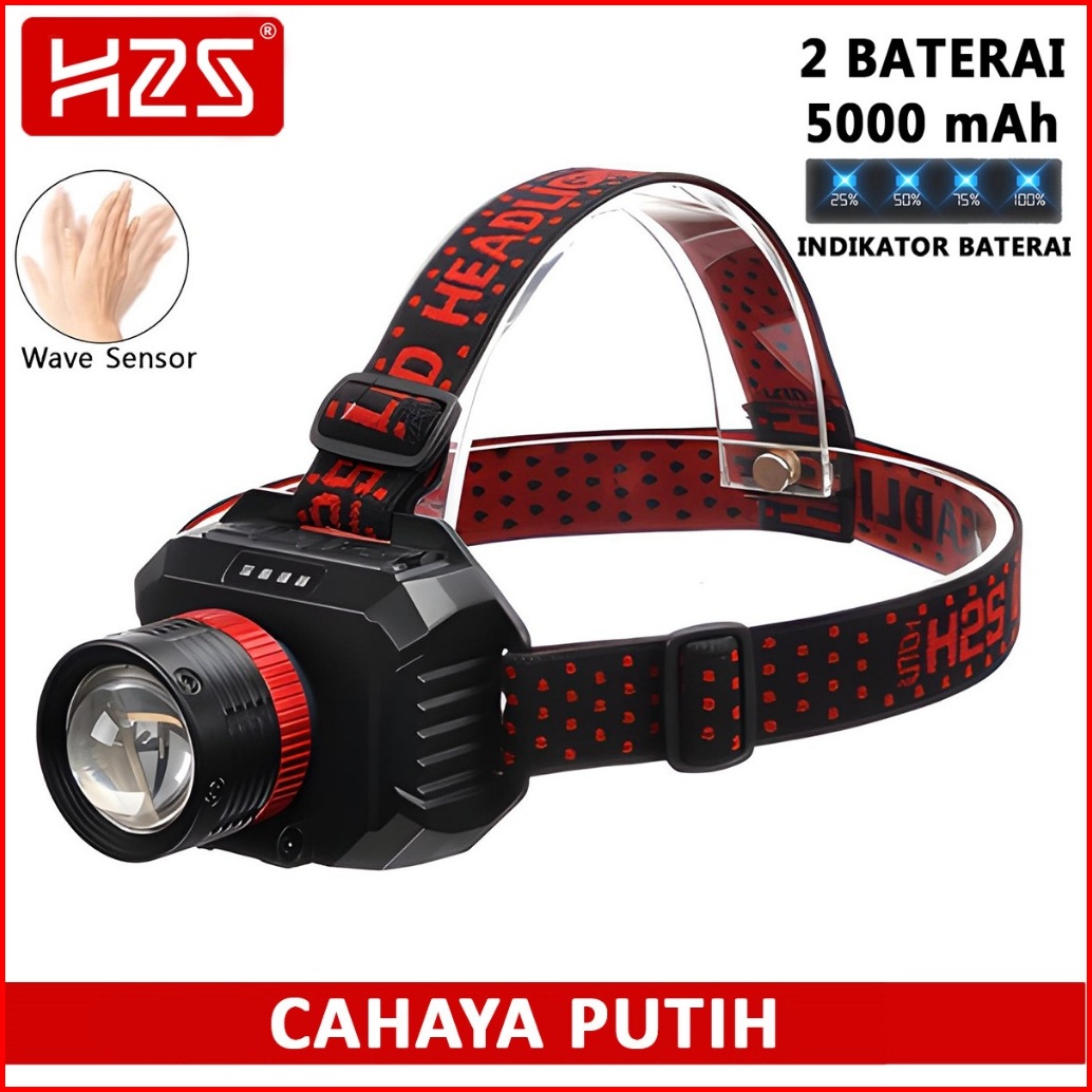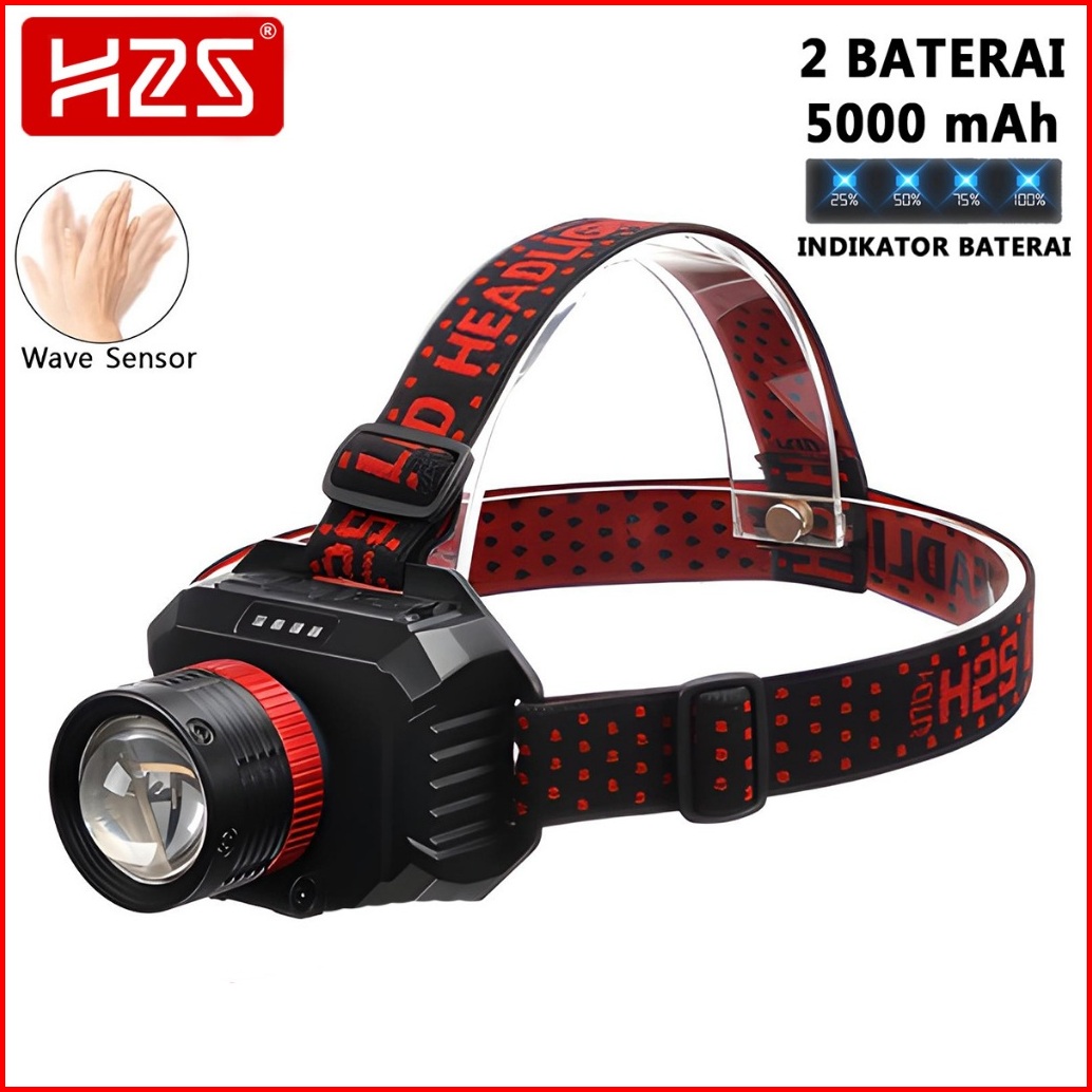 H2s Senter Kepala Cas Led Laser Sensor Gerak 50w 2 Baterai 5000mah Zoom Out In Putar Hs-4877p