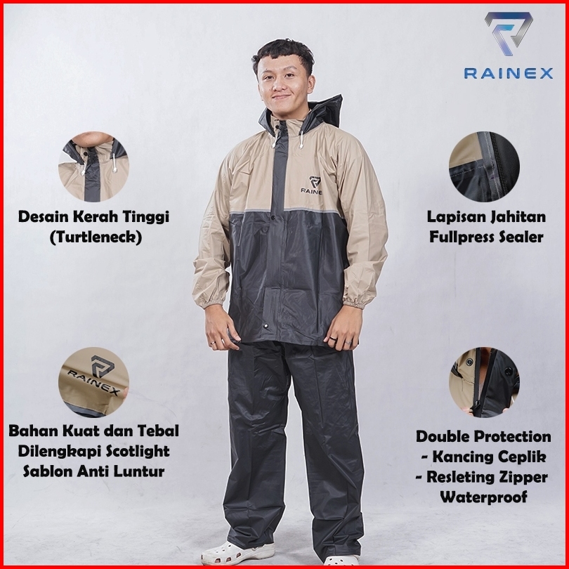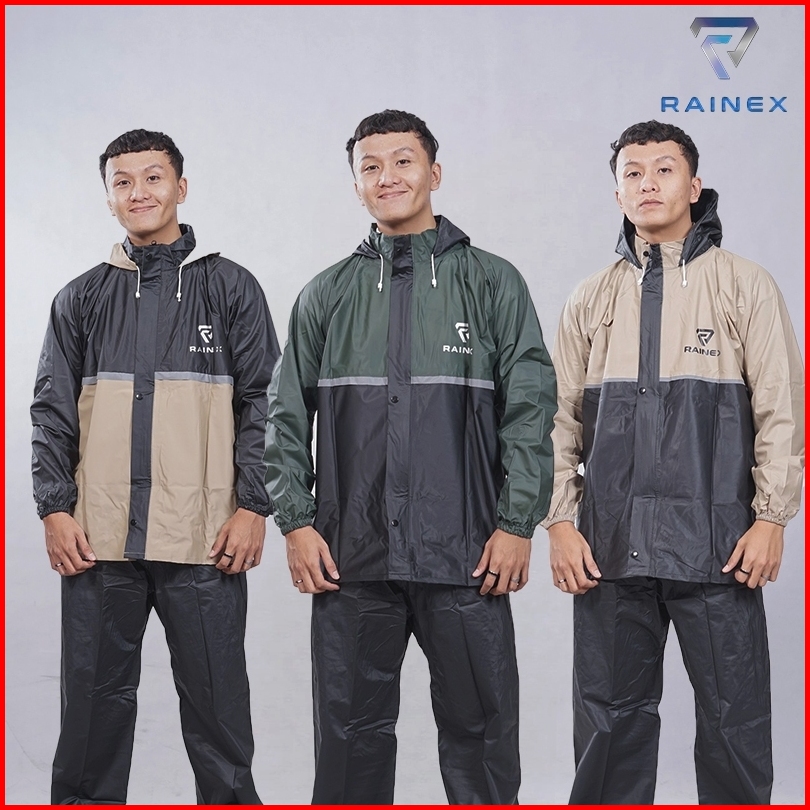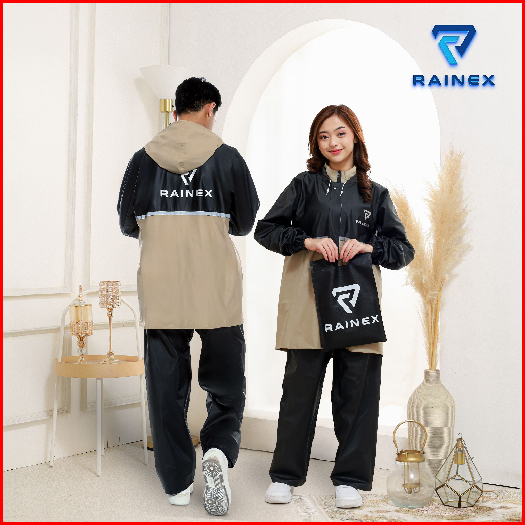 Jas Hujan Mantel Set Hoodie Pria Wanita Bahan Tebal Trendy Anti Rembes Press Sealer By Rainex