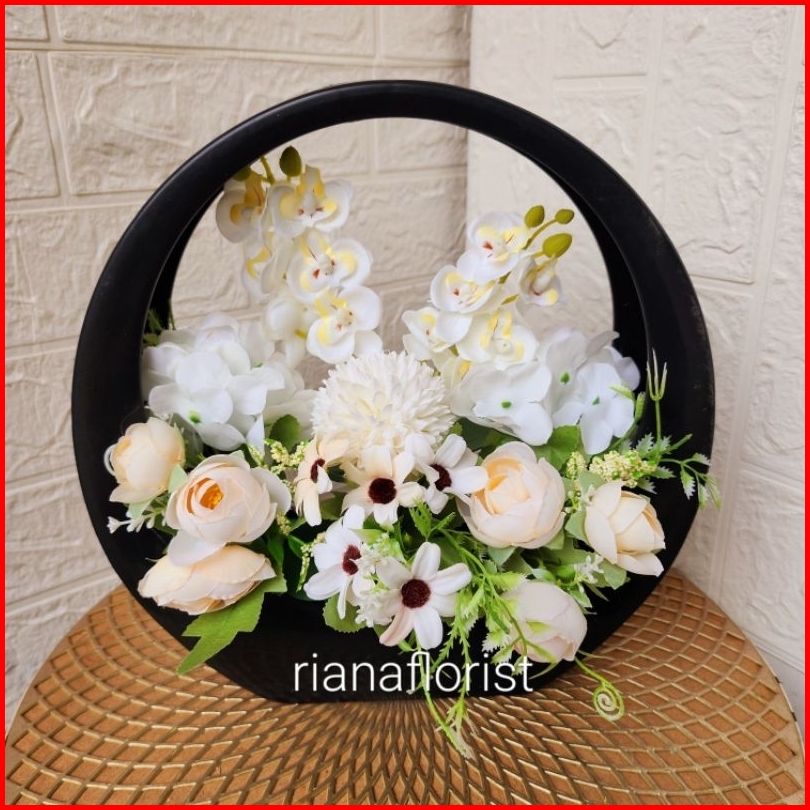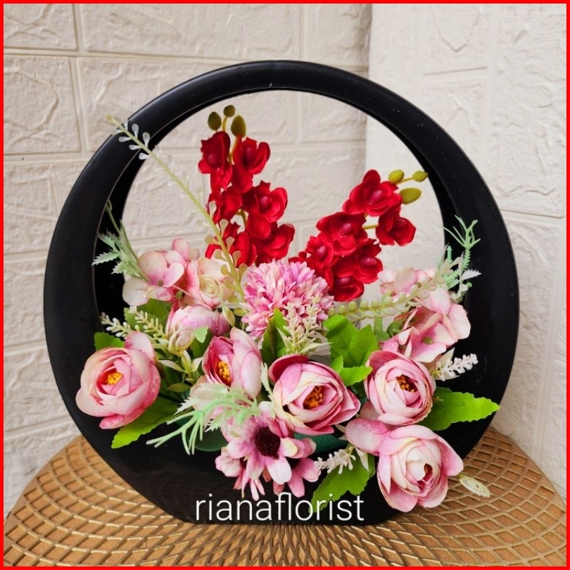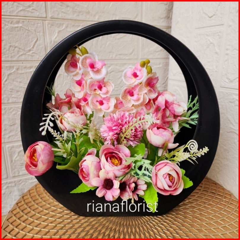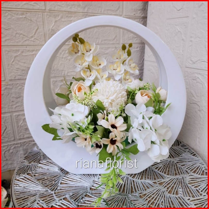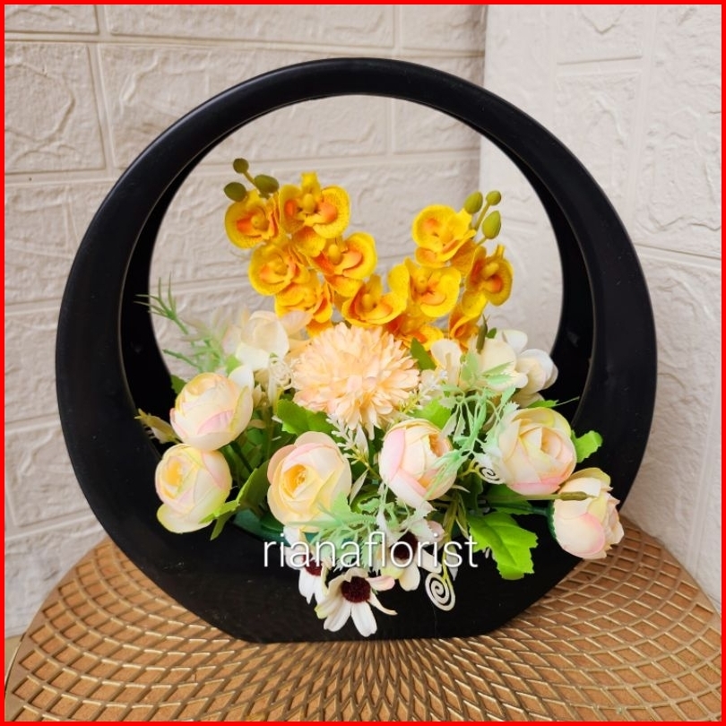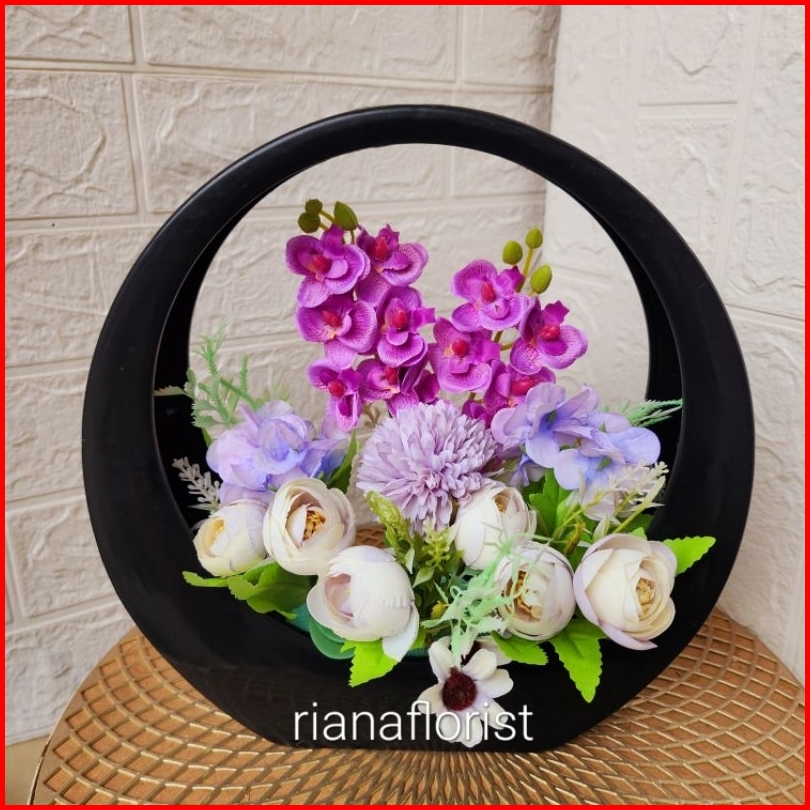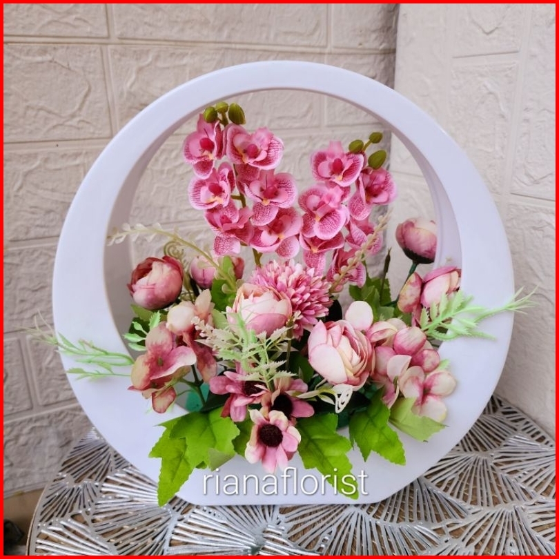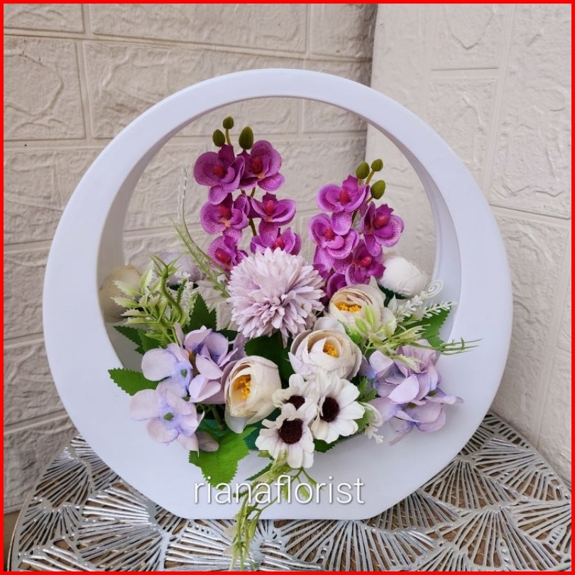 Buket Anggrek Kombinasi Artificial Vas Dinding Purnama