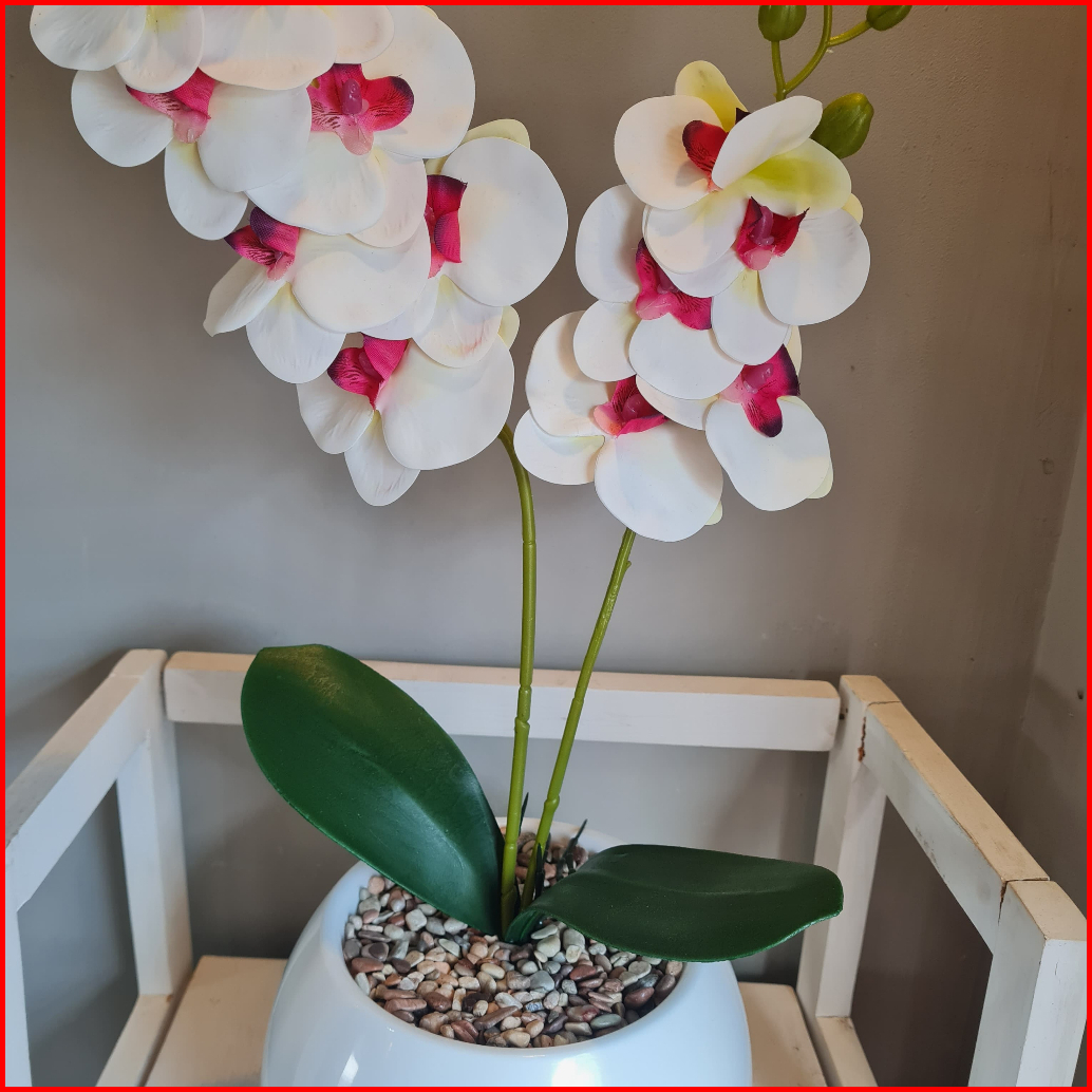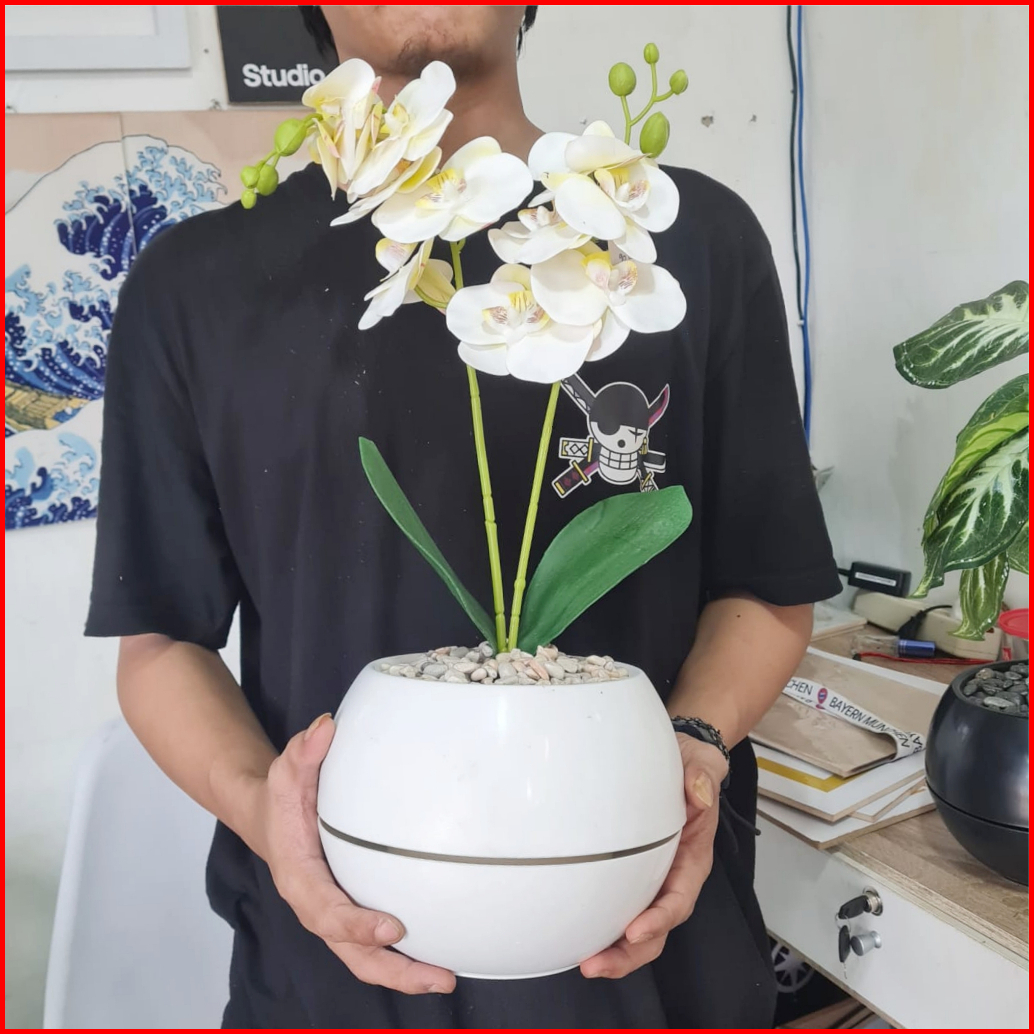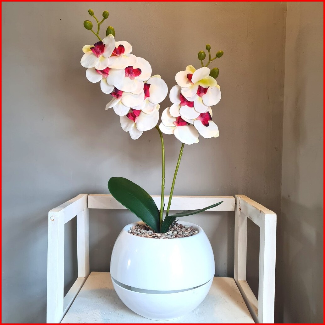Bunga Anggrek Latex Vas Bola Cabang 2 Bunga Jumbo