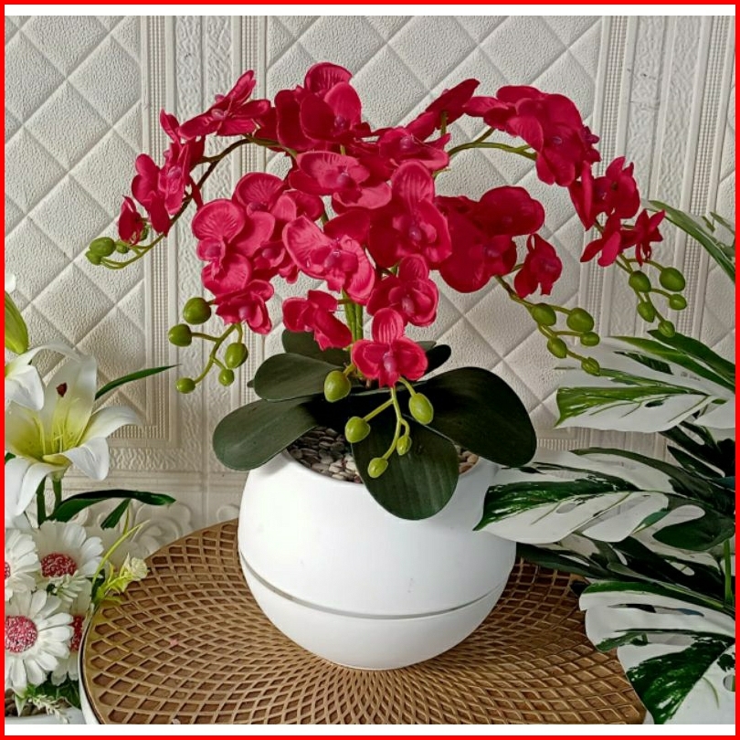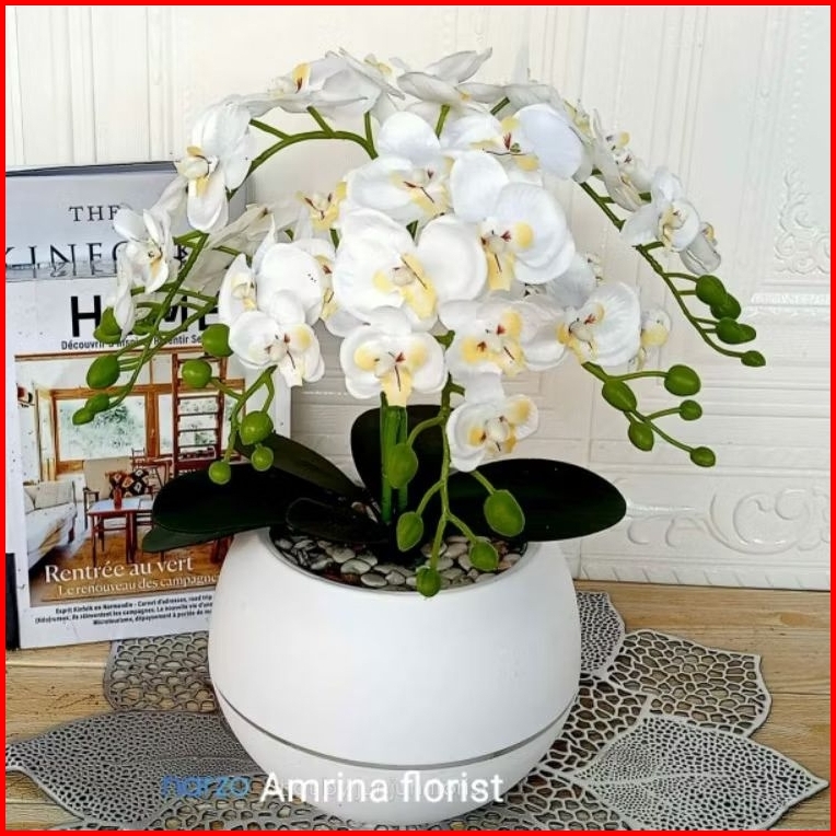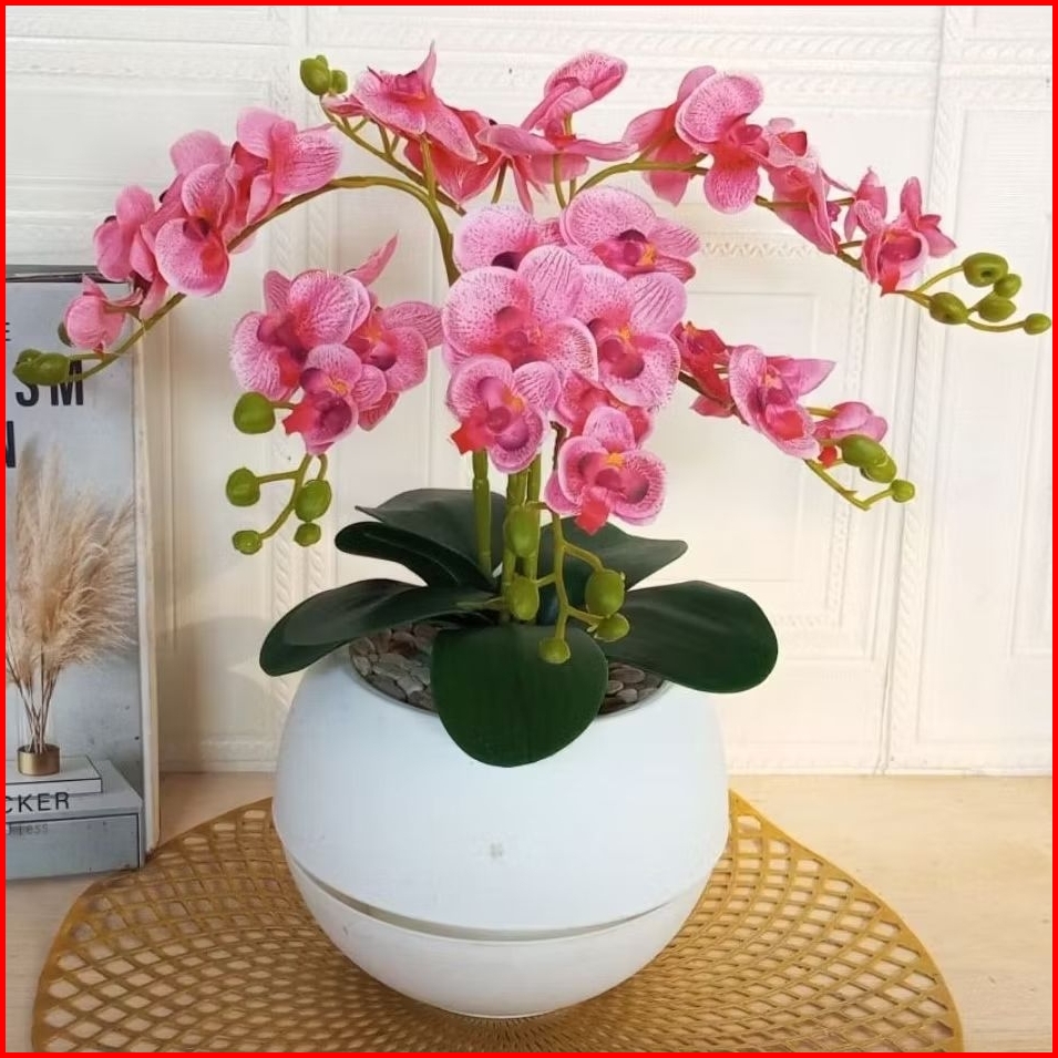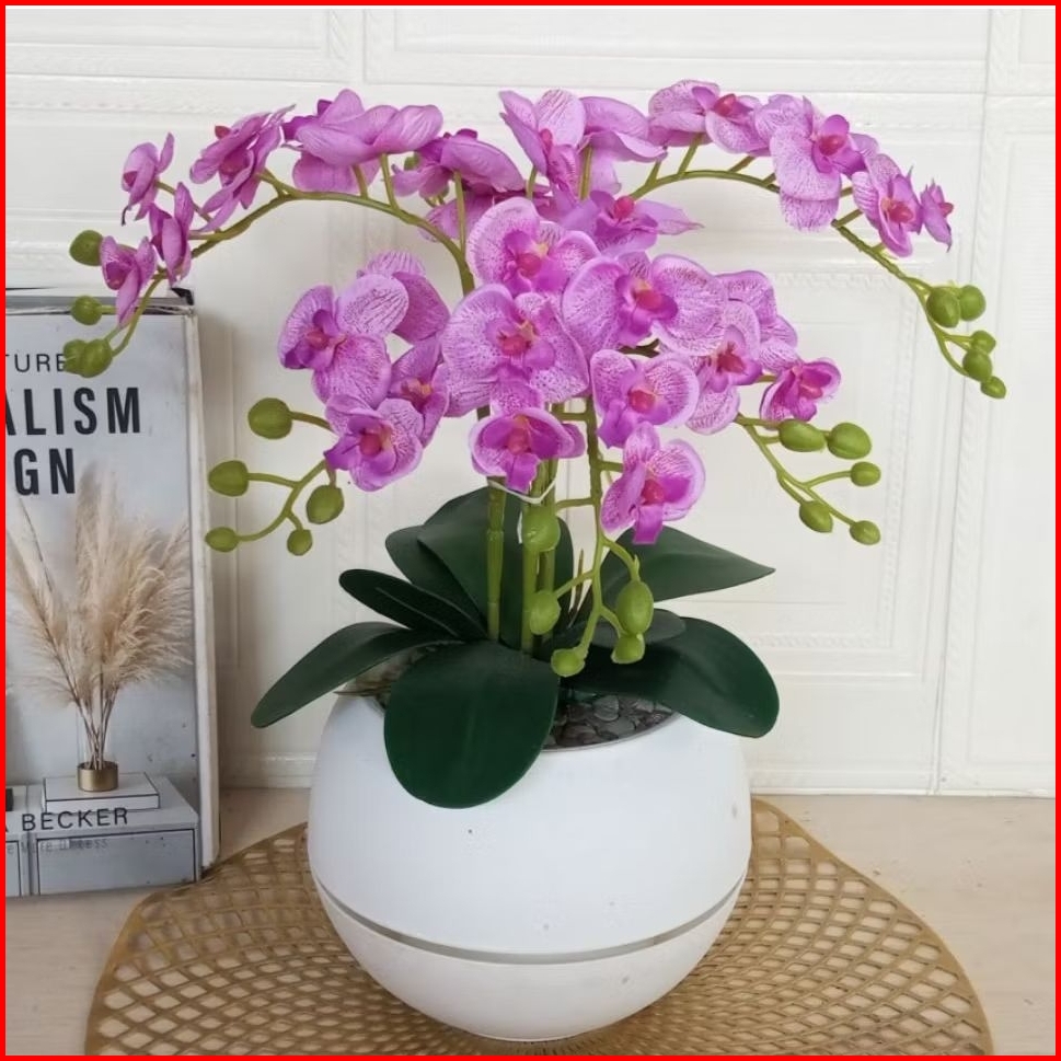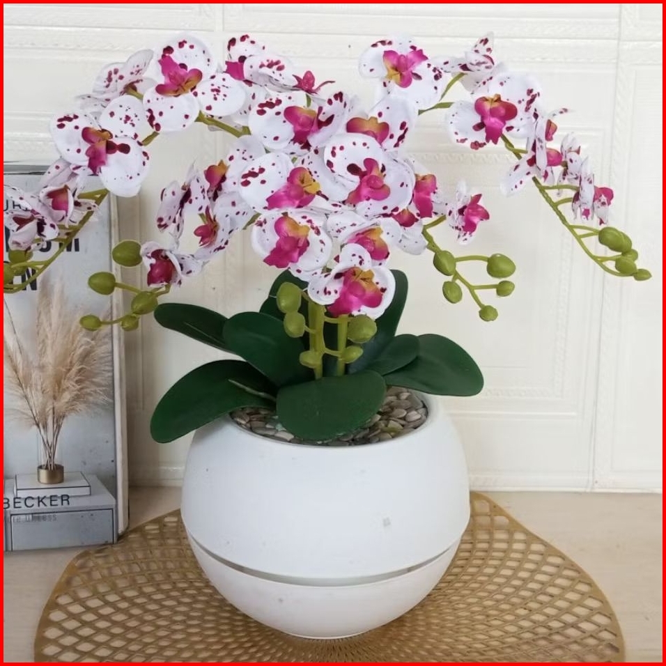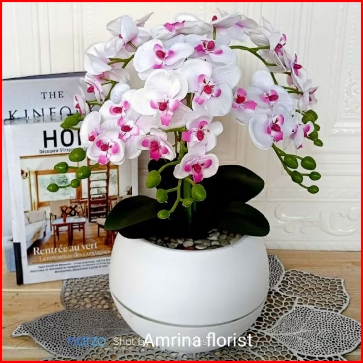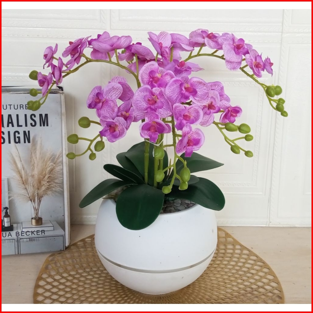 Bunga Anggrek Kain Artificial 6 Cabang Pot Bola Bunga Anggrek Hias Murah Ko